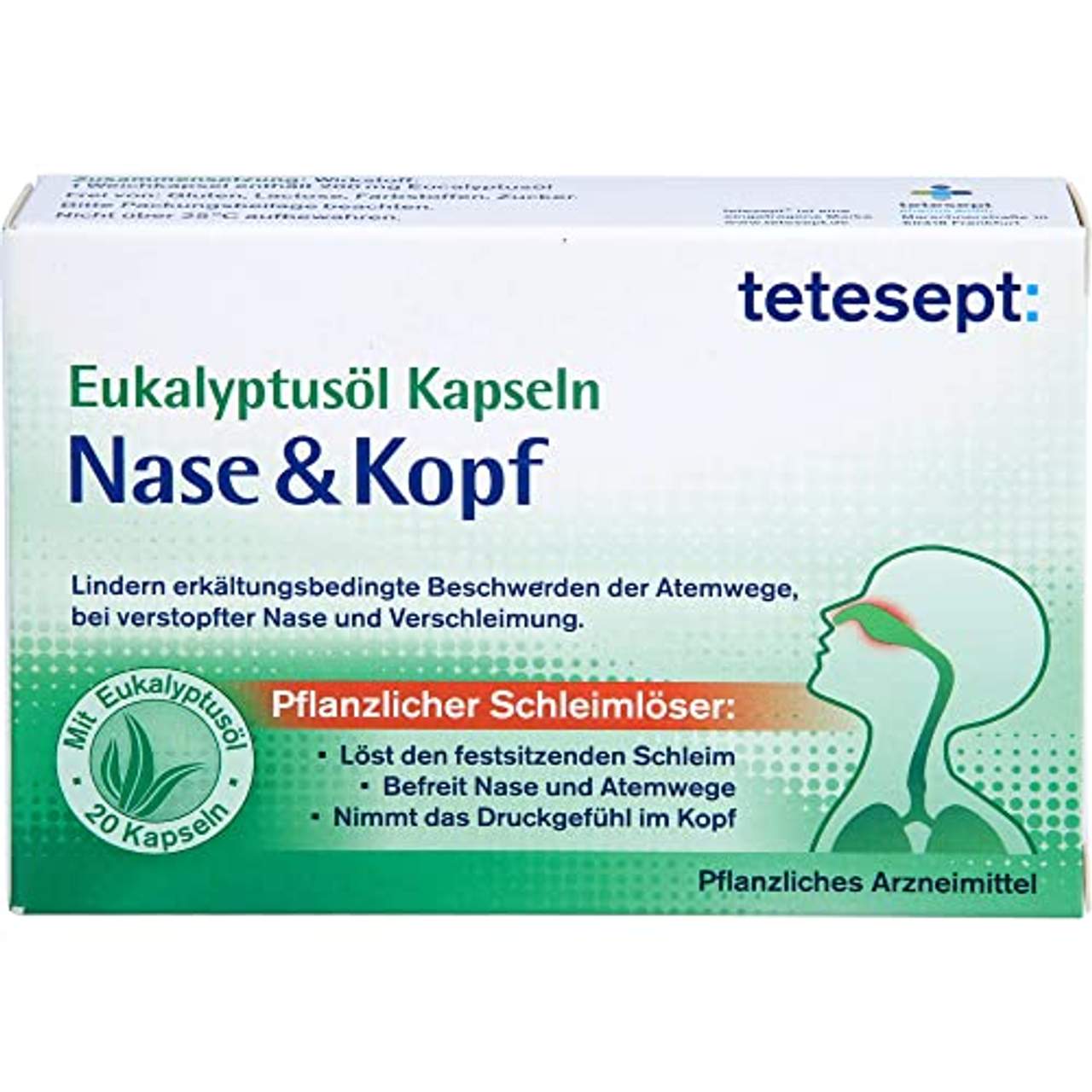 - Tetesept Eukalyptusöl Kapseln Nase & Kopfca. 9 €0,44 €/StückGratis Premiumversand mit Amazon Prime