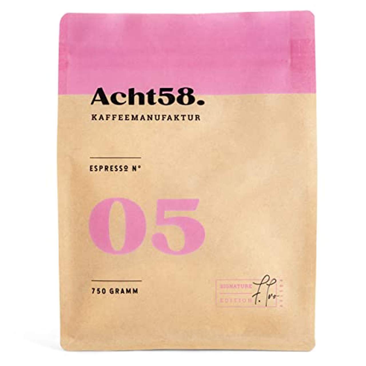 Espresso N°05 von Coffee858Unsere N°05. Der Liebling. Dieser Blend aus 100% Arabica aus Brasilien, El Salvador und Guatemala ist was ganz Besonderes. Er zeichnet sich durch seine vollen Aromen nach Milchschokolade, Karamell und einer feinen Orangennote aus. In Kombination mit Milch kommt der süße Geschmack zusammen mit den feinen Röstnoten besonders gut zur Geltung.Besuche jetzt unseren Amazon Store, um alle Röstungen zu entdecken: https://www.amazon.de/stores/page/4A8327CE-E1A3-41D4-B12C-96F31CCB04D4Das zeichnet unseren Espresso ausBohnen in Premium QualitätFair & Direkt gehandeltKomplett natürlicher Anbau ohne Pestizide oder chemische DüngemittelTraditionell von Hand geröstetLangsame und schonende RöstungBesonders säurearm & bekömmlichUnsere drei Premium Röstungen sind für alle Liebhaber von komplexen, kräftigen und vollen Espressi. Die Kaffees zeichnen sich durch ihre intensiven Aromen nach Schokolade & Nüssen und ihre dichte Crema aus. Nach der Röstung werden die ganzen Bohnen sofort in Aromaschutzbeuteln mit praktischen Zippverschluss versiegelt.Bitte beachten: Der Kaffee wird in Kleinst-Chargen geröstet. Es sind immer nur wenige Kilogramm pro Woche verfügbar. Angebot solange der Vorrat reicht.C°858. Kaffee mit Charakter.