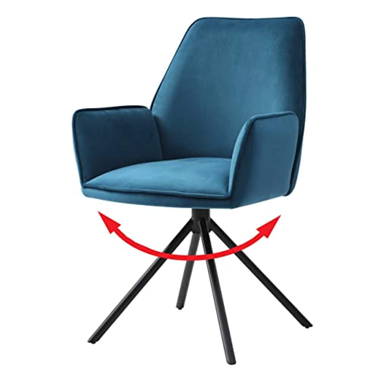 Die weiche Polsterung aus schimmerndem Samt erhöht den Sitzkomfort des Esszimmerstuhls ungemein und ermöglicht ein äußerst bequemes Verweilen auch über mehrere Stunden hinweg – dieser Stuhl erfreut durch tolle Optik und gute Verarbeitung. Maße (ca.): Höhe: 86 cm Breite: 60 cm Tiefe: 60 cm Sitzhöhe: 49 cm Sitzbreite (hinten): 40 cm Sitzbreite (vorne): 47 cm Sitztiefe: 42 cm Höhe Rückenlehne (vom Sitz aus gemessen): 43 cm Höhe Armlehne (vom Sitz aus gemessen): 18 cm Material: Variante mit schwarzen Beinen: Bezug: Samt (100% Polyester) Gestell: Pulverbeschichtetes Metall Variante mit Edelstahl-Beinen: Bezug: Samt (100% Polyester) Gestell: Edelstahl Modern und futuristisch - dieser Stuhl ist mit vielerlei Einrichtungsstilen kombinierbar. Dieser Stuhl lässt sich mittels eines leichtgängigen Kugellagers jeweils nach rechts und links um 90° drehen. Außerdem dreht der Stuhl automatisch wieder in die Ausgangsposition zurück, wenn man die Füße vom Boden hebt.Möchte man in der gedrehten Position bleiben, muss man die Füße am Boden lassen. Bezug aus Samt - noch heute bringen wir den weichen Stoff in Verbindung mit königlichen Roben und Gewändern. Samt wird in den verschiedensten Bereichen verwendet und schafft ein ganz besonderes Ambiente. Möbel aus Samt sind ein wahrer Blickfang und wirken in allen Bereichen edel und exklusiv.Mit diesem Stuhl fällt es besonders leicht, sich wohlzufühlen