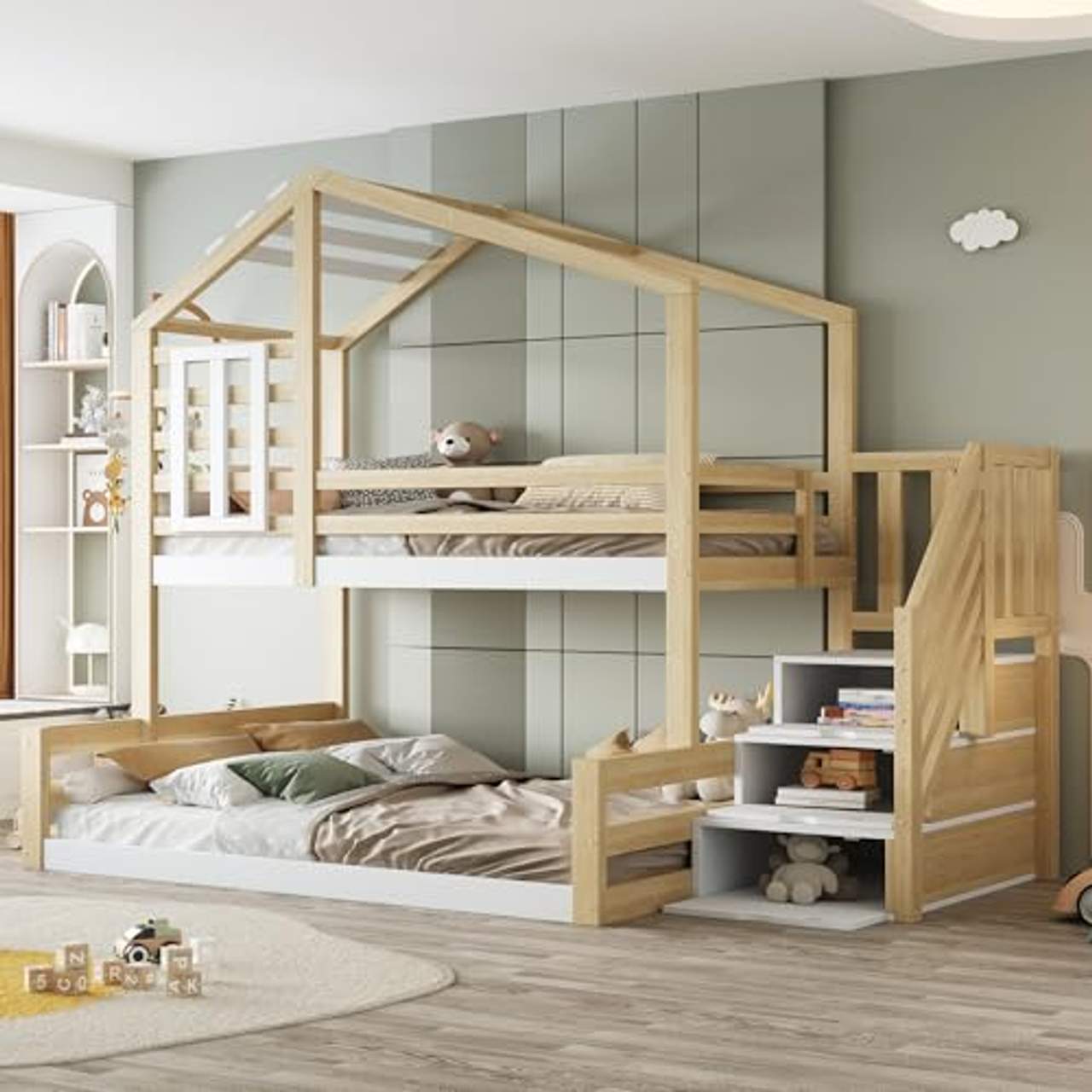 - Kreatives Design: Das ästhetisch ansprechende Design des "Gegtuon Etagenbett Bett 90x200 & 140x200 cm" umfasst charmante Geländer und eine hausähnliche Struktur mit Fenstern, die die Kreativität der Kinder anregen. Dieses fantasievolle Design regt zum Spielen und Erforschen an und macht die Schlafenszeit zu einem Abenteuer und nicht zu einer lästigen Pflicht. Eine solche Umgebung kann die Kreativität der Kinder anregen und es ihnen erleichtern, in ihrem eigenen Raum Geschichten zu erzählen oder Rollenspiele zu spielen, was ihre gesamte Entwicklung fördert.