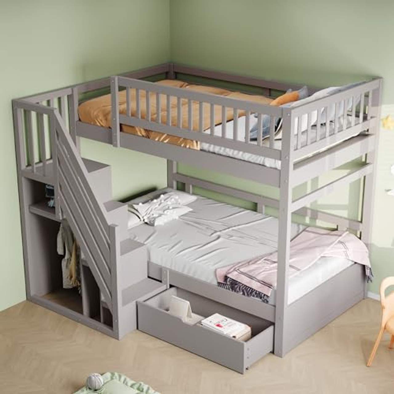 - Innovative Stauraumlösungen: Die innovative Treppe des RIAZOS Kinderbettes ist mit eingebauten Stauschränken ausgestattet und verwandelt so ein wesentliches Merkmal des Etagenbettes in eine praktische Lösung, um die Habseligkeiten der Kinder zu organisieren. Jede Stufe dient als Stauraum und ermöglicht einen einfachen Zugriff auf Spielzeug, Bücher, Kleidung und andere wichtige Dinge, ohne den Wohnraum zu überladen. Dieses durchdachte Design ermutigt Kinder dazu, ihre Sachen zu ordnen und lehrt sie von klein auf wertvolle Ordnungsgewohnheiten. Die Eltern werden die geringere Unordnung und die effiziente Nutzung des vertikalen Raums zu schätzen wissen.