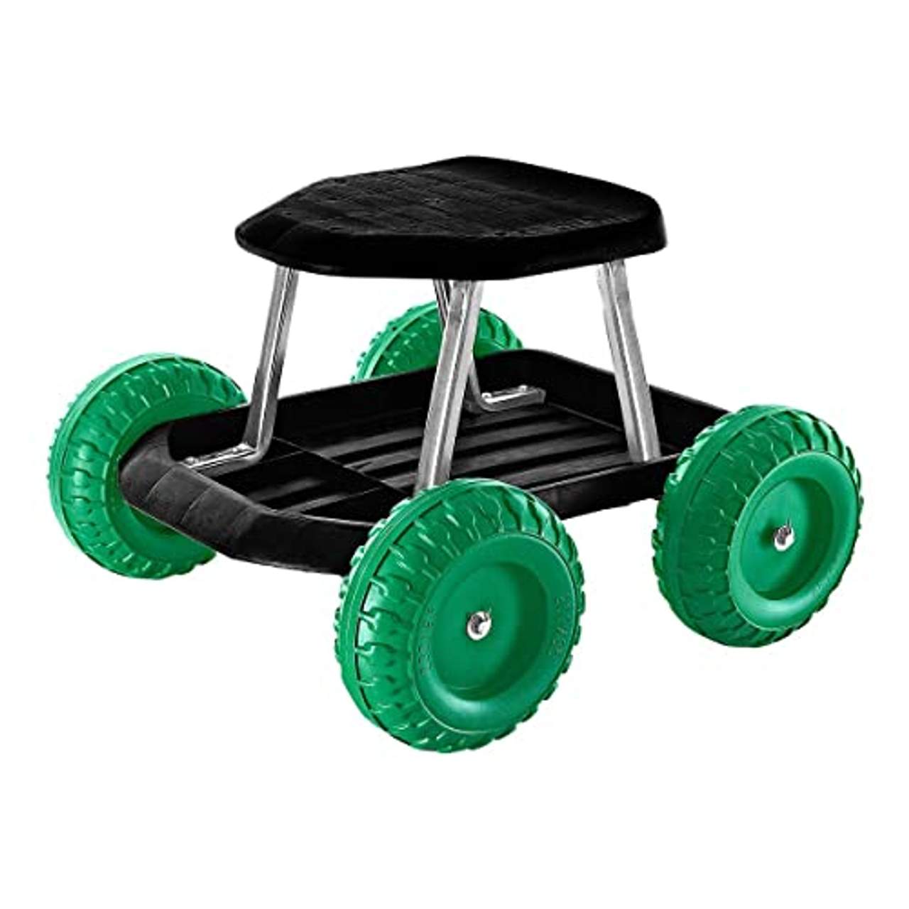 - Mobilität: Dank seiner vier Räder und seines groben Profils lässt sich der Rollsitz leicht über jedes Gelände im Garten oder im Haushalt bewegen.