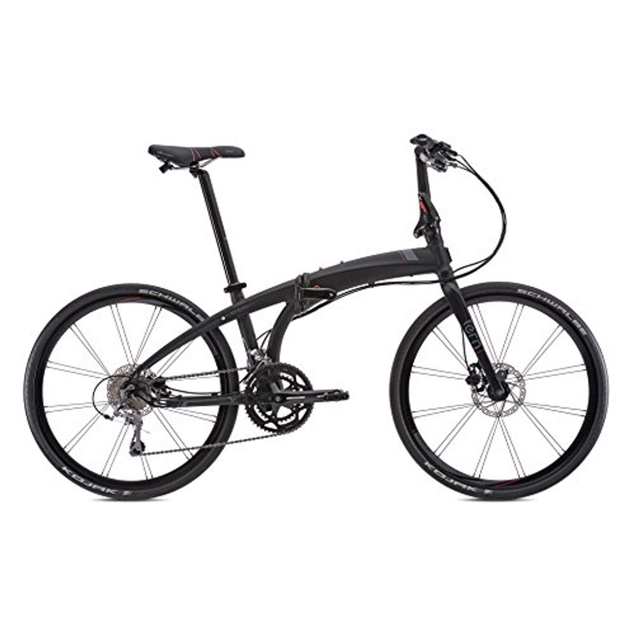tern Eclipse P20 26" blackDas TERN Eclipse P20 Faltrad ist die edle und leichte Rennrad-Faltrad-Variante von TERN. Mit seiner hochwertigen Ausstattung steht das Falt-Bike den großen Rennrädern in Nichts nach, denn das Klapprad ist wie geschaffen für steile Kurven und schnelle Abfahrten.Wie alle Faltbikes von Tern verfügt auch das Eclipse P20 das innovative OCL-Rahmengelenk, welches sich mühelos bedienen lässt und sich dabei äußerst leise schließt und öffnet. Besonders hervorzuheben sind:Die Gabel: Die Gabel aus Aluminium wurde aus einem einzelnen, hydrogeformten Rohr gefertigt und ist nicht nur besonders leicht, sie garantiert außerdem komfortable Fahrperformance auf langen Touren.Die Gabel trägt wesentlich zur Fahrstabilität und zum Komfort auf unebenen Untergründen bei und bietet präzises Handling, auch bei hoher Geschwindigkeit. Die Schaltung: Die TIAGRA Schaltung von Shimano mit 20 Gängen bietet Rennrad-Fans fortschrittliche All-Road-Performance durch modernste Technologie und höchste Qualität.Das schlichte und schlanke Design der Schaltung verleit dem gesamtzsystem einen frischen, modernen Look. Die komfortable und einfache Bedienung ermöglicht müheloses und präzises Schalten. Mit der TIAGRA bietet SHIMANO eine perfekte Balance zwischen guter Performance, einfacher Handhabung und geringem Wartungsaufwand, welches beste Kontrolle in allen Lagen verspricht.Die Bremsen:Die Hydraulikbbremsen von Tektro verzögert auch auf nassem Untergrund und bergab zuverlässig. Das Bremssystem ist wartungsarm, servicefreundlich und verzögert auch bei hohen Geschwindigkeiten sicher. Der Rahmen: Der robuste und steife Aluminiumrahmen besticht durch sein modernes Design und lässt sich dank der OCL- Technologie in Sekunden zusammenfalten.Das Faltgelenk ist zudem besonders wartungsarm und hält auch noch über Jahre hinweg, was es verspricht, sich einfach und schnell zusammen falten zu lassen. Die Reifen: Die Kojakt-Reifen von Schwalbe sind unglaublich leicht und rollen ungemein schnell.Dennoch bieten sie genug Volumen für ein komfortables Vorankommen. Diese Reifen sind ideal für schelle Pendelfahrten und längere Touren. Das Gesamtgewicht: Das Gesamtgewicht liegt bei leichten 12,3 kg. Weitere Eigenschaften Weitere Spezifikationen findest du unter dem Reiter „Eigenschaften“. Wenn der Hersteller Angaben zum Gewicht macht, findest du diese auch dort unter „Gewicht laut Hersteller“. Vorteile von 26 Zoll Laufrädern:Kleinere Laufräder sind bei ähnlicher Konstruktionsart stabiler und bieten eine bessere Beschleunigung als größere Laufräder.Durch den geringeren Umfang lassen sich kleinere Rahmen mit niedriger Überstandshöhe für kleinere Fahrer realisieren. Info zum Faltrahmen:Faltrahmen können mittels Gelenken sehr kompakt zusammen geklappt werden. Deshalb werden in Verbindung meist kleine Laufräder und klappbare Pedalen sowie Lenker montiert.Bei den meisten Verkehrsbetrieben zählt ein zusammengeklapptes Faltrad als Handgepäck und muss nicht extra bezahlt werden. Die Marke Tern:Wer ein hochwertiges Klapprad sucht, kommt an dem taiwanesischen Unternehmen Tern nicht vorbei. Obwohl erst 2011 gegründet, hat die Firma bereits viele Preise für Design und Innovation gewonnen und mittlerweile den Weltmarkt erobert.Dank intelligenter Technik lassen sich die Räder von Tern im Handumdrehen zusammenfalten. Dies ermöglicht eine völlig neue Form der Mobilität, gerade in Großstädten und Ballungszentren. Wenn du dein Bike oft in Kombination mit Bus und Bahn nutzt, ist Tern genau die richtige Marke für dich.
