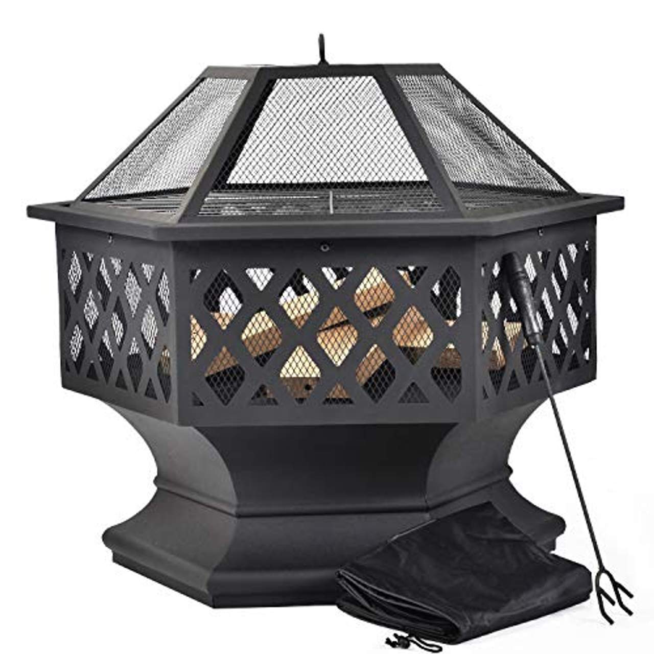- Langlebiges Design: Die Feuerstelle besteht aus einem hochwertigen, hitzebeständigen Stahlrahmen, der sie viel haltbarer und rostbeständiger macht als andere Modelle. Sie wird außerdem mit einer wasserdichten Abdeckung geliefert, um sie sauber zu halten, wenn sie nicht in Gebrauch ist, und sie vor Regen oder Wasserschäden zu schützen.