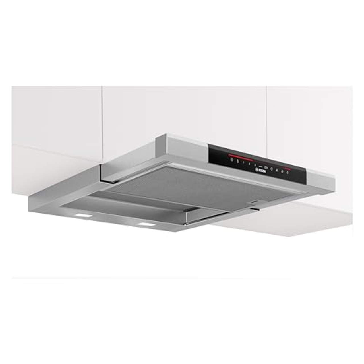 Bosch DFS067K51 Serie 8 FlachschirmhaubeFlachschirmhauben: kaum sichtbar in einem Oberschrank integriert sorgen sie für ein klares KüchendesignIn der Küche kaum zu hören. Auf der Stromrechnung kaum zu sehen.Manchmal können Sie nicht einmal das Geräusch des Brutzelns in der Pfanne genießen, weil die Dunstabzugshaube viel zu laut ist.Durch Einsatz eines Hochleistungslüfters und Optimierung des Luftstroms innerhalb der Dunstabzugshaube arbeitet eine Bosch Dunstabzugshaube mit EcoSilence Drive Motortechnologie deutlich leiser und spart über 80 % Energie. Der Motor verursacht nahezu keine mechanische Reibung; dadurch ergibt sich nicht nur weniger Betriebsgeräusch, sondern auch eine verbesserte Langlebigkeit. MetallfettfilterMetallfettfilter sind für Abluft- und Umlufthauben erforderlich, um Fett und andere Feststoffe aus der eingesaugten Luft zu filtern.Damit die hohe Wirksamkeit erhalten bleibt, sollten sie etwa einmal pro Monat von Hand oder im Geschirrspüler gereinigt werden.Die optimale Lüfterleistung für jede Küchengröße.Egal, ob Sie eine offene Wohnküche oder eine kleine geschlossene Küche haben. Wir bieten die optimale Lüfterleistung für jeden Küchentyp.Für ein gleichmäßig angenehmes Raumklima sollte die Luft 6- bis 12-mal pro Stunde komplett ausgetauscht werden. Um das zu erreichen, muss die Luftfördermenge bzw. die Leistung der Dunstabzugshaube dem Raumvolumen entsprechen.