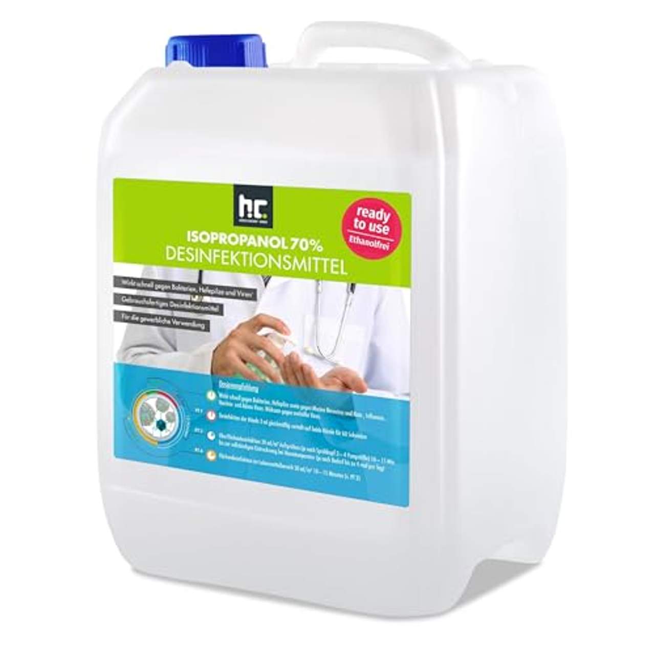 5 L Zugelassenes DesinfektionsmittelDesinfektionsmittel für Hände & Oberflächen In Zusammenarbeit mit einem der führenden Chemikalienhersteller Brenntag dürfen wir Ihnen ein hochwertiges Desinfektionsmittel für den gewerblichen Bereich anbieten. Die gebrauchsfertige Lösung eignet sich nicht nur zur Desinfektion der Hände, sondern bekämpft auch zuverlässig Viren & Bakterien auf Oberflächen. Auf Basis von 70% igem Isopropanol und ohne Zusatz von Farb- und Duftstoffen können Sie das Desinfektionsmittel nahezu überall einsetzen und somit Ihre Waren, Kunden und Mitarbeiter vor eine Reihe von Pilzen und Bakterien schützen.Maße des Kanisters: H25 cm x L 19,5 cm x B 14,5 cm. Je nach Einwirkzeit können Sie das Desinfektionsmittel auf Ihre Bedürfnisse abgestimmt verwenden. Bereits nach 30 - 60 Sekunden wirkt es gegen Bakterien, Hefepilze sowie gegen Murine Norovirus und Rota-, Influenza-, Vaccinia- und Adeno-Viren. Es ist wirksam gegen umhüllte Viren zu denen das Corona Virus gehört.Nach dem erstmaligen Öffnen der Flasche ist