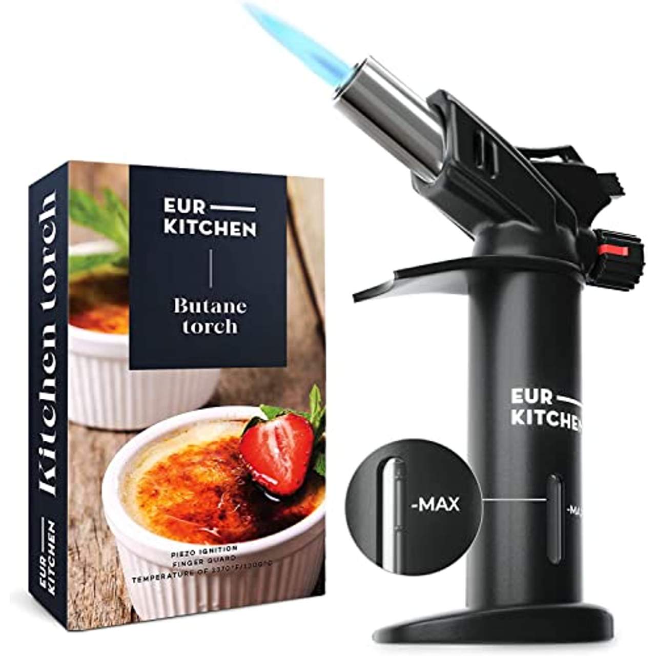 Der EurKitchen Premium Flambierbrenner ist deutlich größer als andere Küchenfackeln und bietet eine bessere Handhabung und Robustheit.