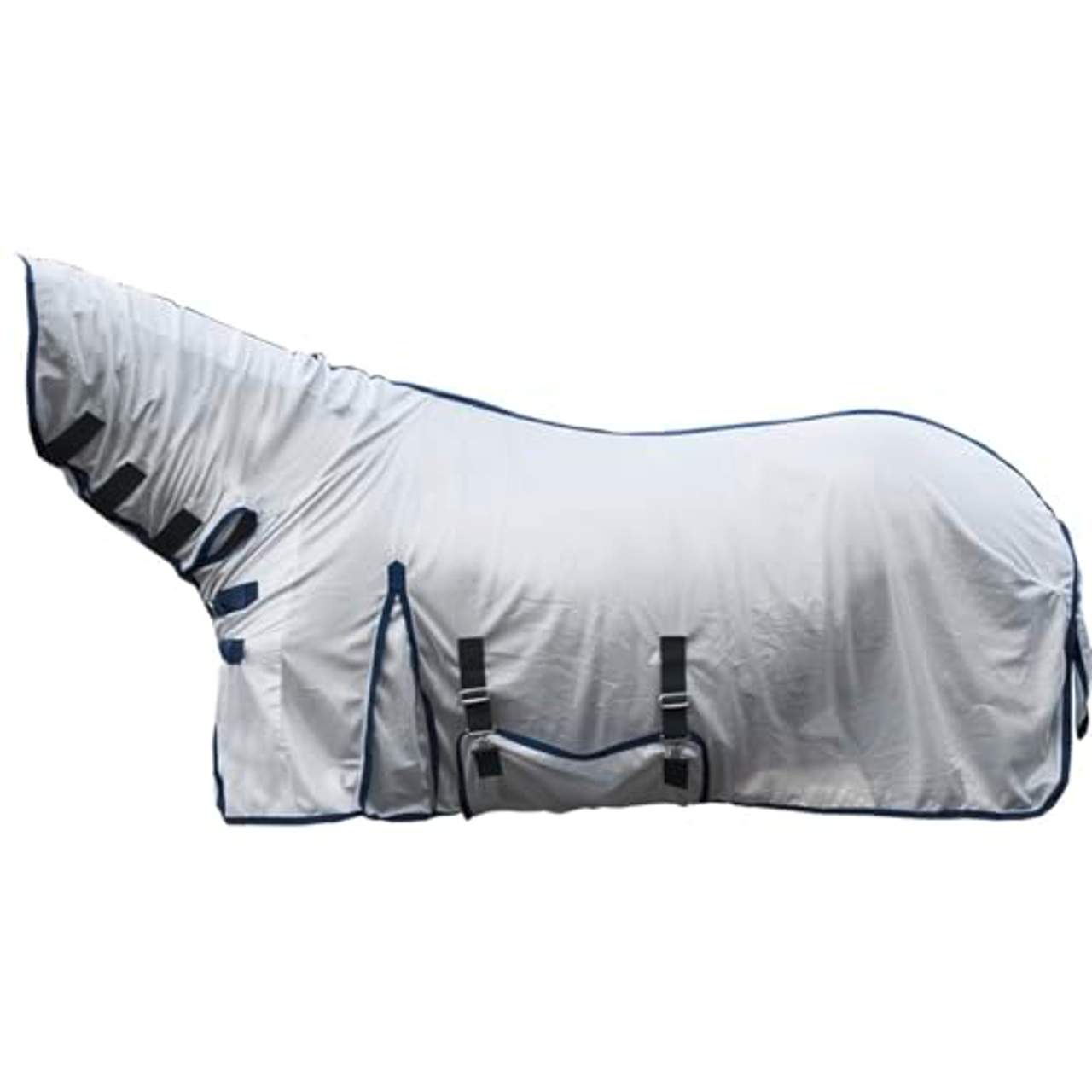 Das Halsteil dieser Fliegendecke ist so konzipiert, dass es fest mit dem Hauptteil verbunden ist. Dieses Designmerkmal verbessert die Gesamtabdeckung und stellt sicher, dass empfindliche Bereiche jederzeit geschützt bleiben, ohne dass ein separates Teil entfernt oder angepasst werden muss.