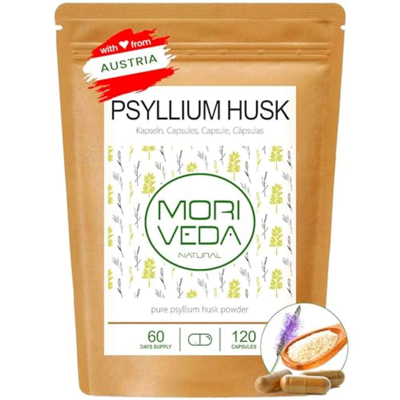 Über MoriVeda Flohsamenschalen Kapseln I Monatspackung I Verdauung
