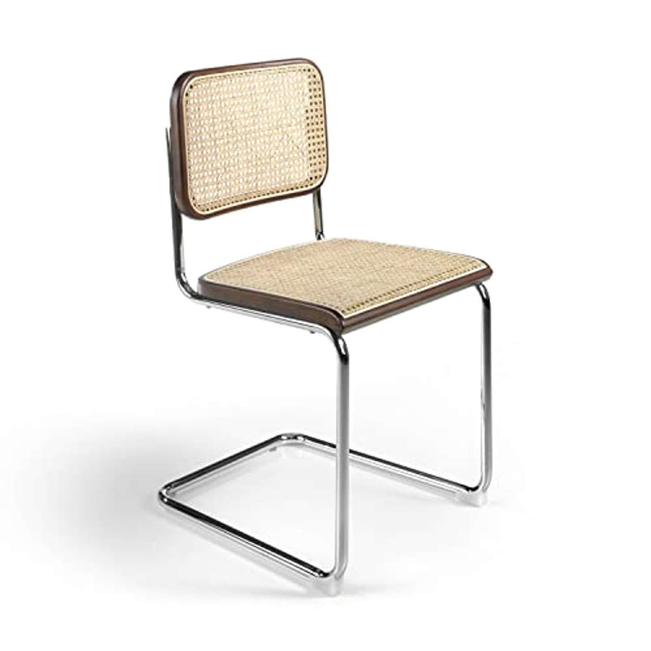 - Dekorativer Touch: Die Kombination aus Rattan und verchromtem Stahlrohrrahmen verleiht diesem Stuhl eine unverwechselbare Note, die jeden Raum aufwertet.