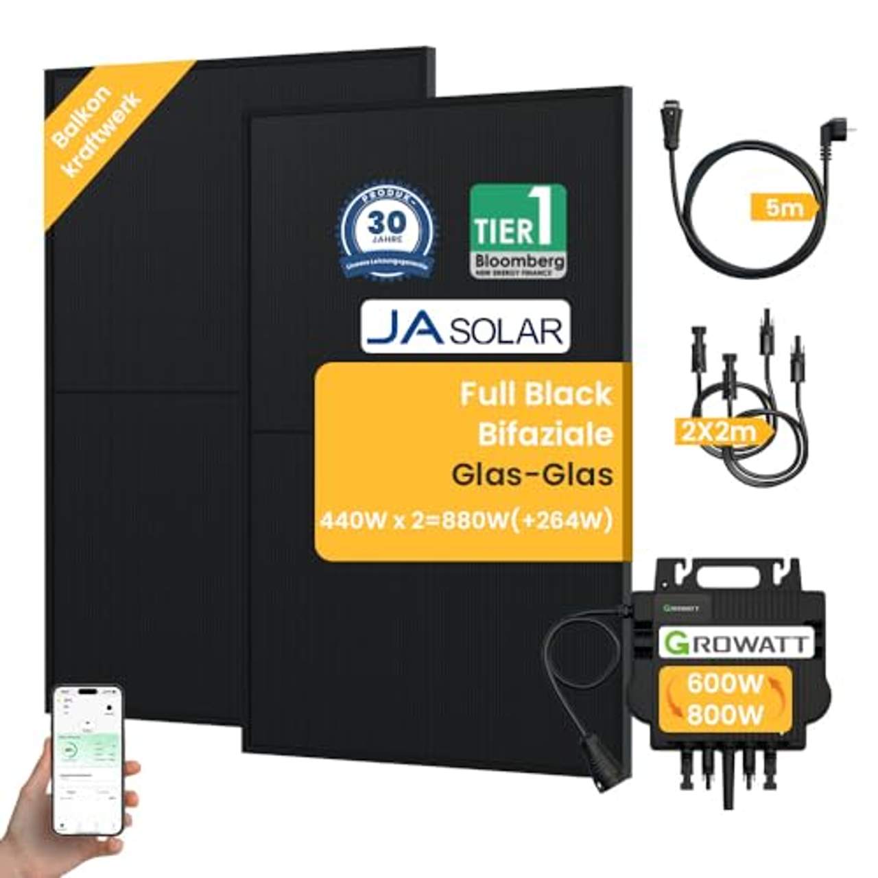 | Lieferumfang | Jasolar 440W*2, Growatt*1, 5m Kabel*1, 2m MC4 Solarkabel*2 |