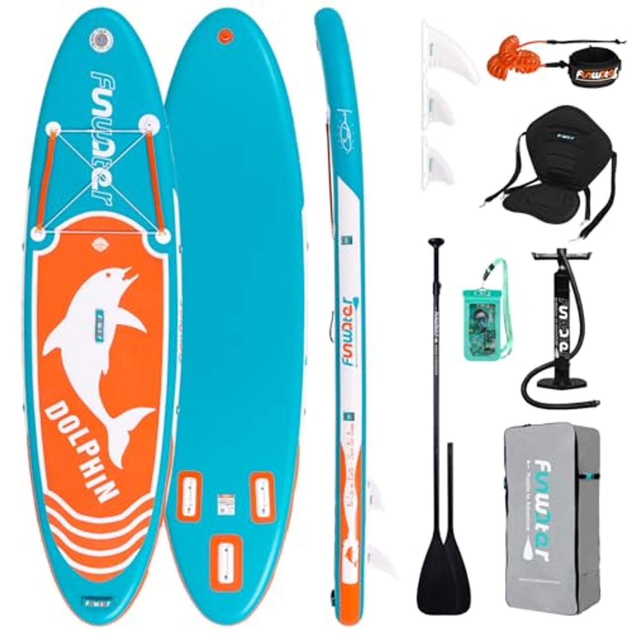 - Komplettes Zubehör: Wenn du dich für das "FunWater Aufblasbares Stand-Up-Paddelbrett 320x84x15 cm" entscheidest, profitierst du davon, dass alle notwendigen Zubehörteile beim Kauf enthalten sind. Dazu gehören eine Hochdruckpumpe, eine Sicherheitsleine, drei Flossen, ein Rucksack, ein verstellbares Aluminiumpaddel, ein Sitz und eine wasserdichte Handytasche. Mit diesem umfassenden Paket können die Nutzer das Beste aus ihrer Zeit auf dem Wasser machen, ohne dass sie weiteres Zubehör separat kaufen müssen.