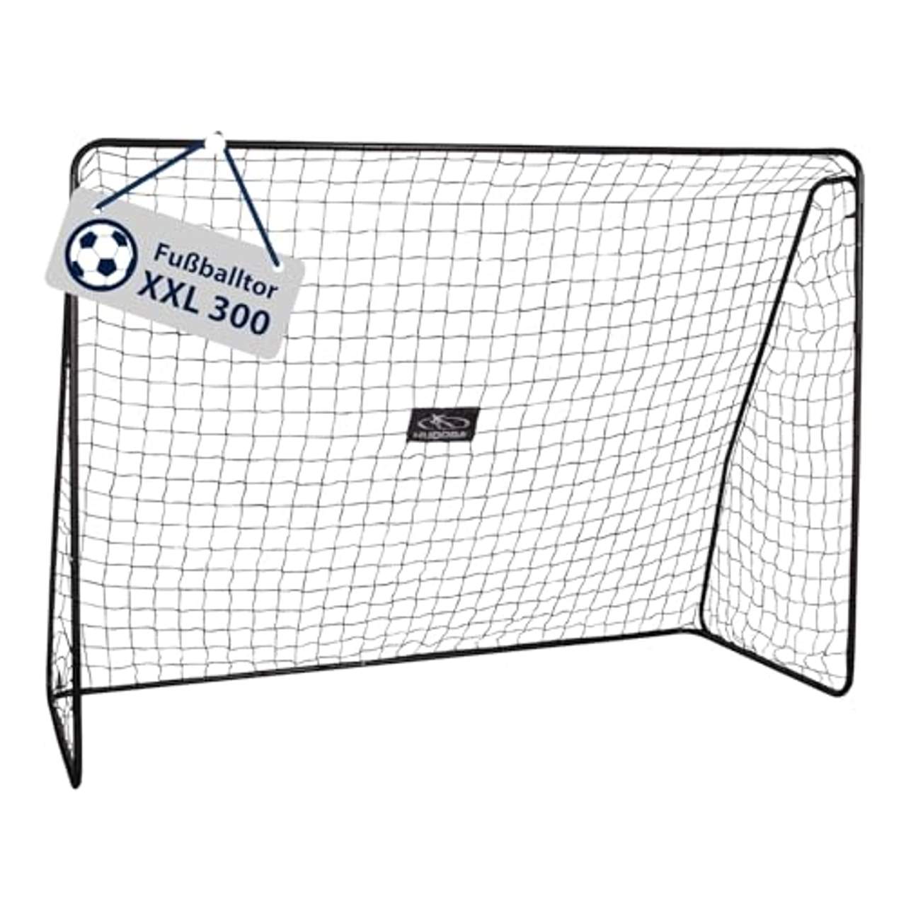 HUDORA Fußball-Tor XXL großWer davon träumt, Fussballstar zu werden, der nutzt jede Trainingsgelegenheit - das ganze Jahr über. Angehende Torwartlegenden und die besten Nachwuchs-Stürmer dürfen mit dem Fussballtor Stadion von Hudora dem grossen Traum ein Stück näher kommen. Für einen langwierigen Aufbau darf natürlich keine Zeit vertrödelt werden, denn jede Minute Spielzeit zählt.Trotzdem sollte ein Fussballtor viel abkönnen, ohne dass es fest im Garten verankert ist, das Grün will schliesslich gepflegt sein. Beim Fussballtor Stadion trifft tolles Design auf schlaue Funktionen. Es lässt sich dank Klickmontage der beschrifteten Stangen und der Netzschlaufen super schnell aufbauen.Latte und Pfosten sind aus 60 mal 30 Millimeter robustem Vierkantrahmen, zusätzliche sieben Heringe zur Standfixierung und Supportstangen sorgen für nochmals festen Halt des Tores auch bei gepfefferten Schüssen. Das Material des Fussballtores ist langlebig und wetterbeständig, man muss es also nicht abbauen, wenn es regnet, sondern kann in Ruhe mindestens den nächsten Abpfiff abwarten.Die praktischen Masse von 300 mal 160 mal 90 Zentimetern sorgen dafür, dass das Tor lange Jahre Freude bereiten und so manches Gartenmeisterschafts-Finale in Erinnerung bleiben wird.