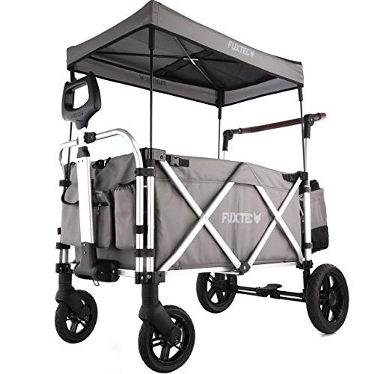 Fuxtec CTL900Der FUXTEC FX-CTL900 ? das Luxusmodell aus der FUXTEC Bollerwagen-Familie! Der faltbare Bollerwagen FX-CTL900 von FUXTEC ist in den Farben Grau, Braun, Premium Grau (grau meliert/Jeansoptik) und Purpur erhältlich. Er ist noch luxuriöser, noch größer, noch stabiler und trotzdem mega flexibel einsetzbar: der große Innenraum ermöglicht ein noch größeres Transportvolumen und bietet viel Platz für die Kleinen und ist somit für die ganze Familie (Kind und Kinder) geeignet.der FX-CTL900 enthält eine klassische Zugstange (was diesen Wagen zu einem echten Bollerwagen macht) und einen Schiebegriff mit einem optisch hervorstechenden Kunst-Lederbezug. durch die vergrößerten Reifen meistert der FX-CTL900 gezogen auch das schwierigste Gelände. alle 4 Reifen sind Komfort-Gummi-Reifen und jeder einzelne Reifen ist gefedert. auch als Transportwagen geeignet - einfaches transportieren von Einkäufen etc. mit einem Klick können Sie die Reifen auf Bedarf entfernen und verringern so noch einmal das Packmaß. am Heck befindet sich die praktische Feststellbremse, damit der Luxuswagen beim Be- und Entladen einen sicheren Stand aufweist und nicht wegrollt.aufgrund des tiefen gepolsterten Innenraums (gepolsterter Boden und Rückenlehne), sitzen die Kinder noch sicherer im Bollerwagen. das komplette Gestell besteht aus hochfestem und dabei denkbar leichtem Aluminium und ist somit sowohl im Einsatz wie auch beim Tragen/Verstauen extrem einfach und einfach zu händeln. das spielend leicht aufbaubare Sonnendach spendet Ihren Kindern ausreichend Schatten in den sonnigen Monaten und kann bei Bedarf - zur besseren Einsicht in den Innenraum - sogar geöffnet werden. der 5-Punkt-Sicherheitsgurt bietet den Kleinen noch mehr Sicherheit und Halt. die abnehmbare Hecktasche ist bis zu 5kg belastbar und enthält zusätzlich ein belüftetes Fach, was sich z.B. gut für Schuhe oder feuchte Kleidung eignet.zur Hecktasche erhalten Sie unsere FUXTEC Kühltasche ? der perfekte Begleiter für die heißen Tage. der Sitzbezug ist komplett abnehmbar und kann ohne weiteres per Handwäsche gereinigt werden (bitte Pflegehinweise beachten!). wenn Sie Ihren FX-CTL900 mal eine längere Zeit nicht benötigen so können Sie ihn mit der Hilfe einer Schutzhülle getrost auch in staubiger (aber bitte trockener) Umgebung lagern.optionales Zubehör: Getränkehalter, Handyhalter, Diebstahlsicherung