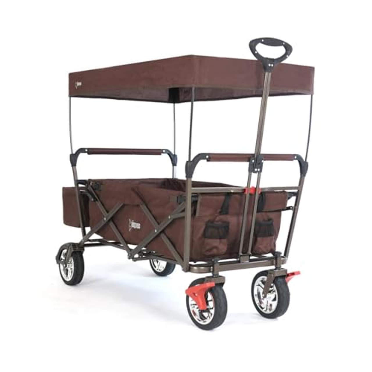 Fuxtec FX-CT500„NEU“ FUXTEC faltbarer Bollerwagen in BRAUN mit Sonnendach, Hecktasche und zusätzlicher Tragetasche ? Erleichtern Sie sich alle Arten von Transporten mit dem optimierten Bollerwagen ORIGINAL von FUXTEC? Faltbarer Bollerwagen auf ein Mini-Maß von gerade mal 15cm Tiefe in wenigen Sekunden zusammengeklappt verstellbarer Handgriff in der Höhe Standhaft im zusammengeklappten Zustand - Dank der neuen Standfüße Vorderreifen mit Feststellbremse - Auch an Abhängen sicher stehen !!! Verchromte Felgen durch ausziehbare Karbonstangen ist in Sekunden Ihr Bollerwagen mit oder ohne Dach UV-Schutz-Sonnendach (LSF17) inkl. Schutzhülle/Schutzhaube zum problemlosen Transport im zusammengeklappten Zustand mit Schaumstoff gepolsterte Bodeneinlage Querstangen mit Polsterschutz Sehr belastbar mit bis zu 75kg Vielfältige nutzbar im Haus, Garten oder auf Baustellen Kippsicher auf 4 großen kugelgelagertenRädern mit 190 mm Durchmesser Breite Räder aus Gummi mit Profil Schutzlackiertes Metal Gestell aus Stahl , NICHT aus Plastik Bereits komplett montiert !!! Ein Lichtschutzfaktor gliedert sich in den Stufen Basis (6-10), Mittel (15-25), Hoch (30-50+). Unser UV-Schutzdach hat einen Lichtschutzfaktor 17 und gliedert sich somit in der mittleren Stufe ein. Die UV-A Durchlässigkeit beträgt nur 6,63%, die UV-B Durchlässigkeit sogar nur 5,62% . Dementsprechend ist der UV-Schutz von UV-A = 93,37% und UV-B = 94,38%. Für dieses Modell bieten wir auch nur den Stoff (komplett) in anderen Farben an. Da alle Stoffe abnehmbar sind können Sie Ihren Bollerwagen in verschiedenen Farben ausstatten. Auch Anschnallgurte für unsere Kleinen bieten wir an und um es unseren wichtigsten Personen gemütlich zu machen haben wir ultra gemütliche und rückenunterstützende Bollerwagenmatten Der neue faltbare Bollerwagen der CT-Serie von FUXTEC ist ein wahrer Alleskönner.Nicht nur, dass sie bis zu 75kg Belastung tragen, sehr leicht sich lenken und ziehen lassen, kann man diese auch äußerst kompakt mit nur einem Handgriff platzsparend zusammenklappen. Gerade mal 15cm tief kann der zusammengeklappte Bollerwagen in jeden noch so kleinen Keller oder Kofferraum Ihres Autos verstaut werden.Zum Verstauen oder Transportieren ist eine extra Schutzhülle/Schutzhaube gleich mit dabei. Damit eignet ein Bollerwagen von FUXTEC ideal für den Einsatz bei Familienausflügen, bei Arbeiten im Garten, Transportieren Ihrer Einkäufe vom Auto ins Haus oder auf der Baustelle. Natürlich begleitet er Sie auch auf Ihrer Mai-Tour zum Vatertag und ist der ideale Lastenträger für sämtliche Getränke.Kein herkömmlicher Bollerwagen wie jeder andere, sondern vom TÜV Süd explizit zur Beförderung von Kindern zertifiziert . Dieses Gerät wurde von der akkreditierten Prüfstelle TÜV Süd getestet, und es wurde ihm das Prüfzeichen: ‚Geprüfte Sicherheit‘ verliehen. Zertifikatsnummer: Z1A160577523028