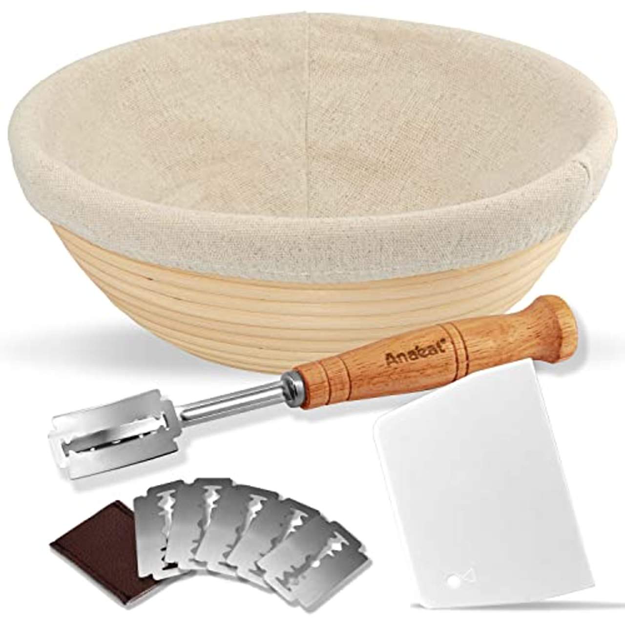 Preisvergleich: Günstigste Angebote für Anaeat 25 cm Brot-Banneton-Gärkorb-Set runder Sauerteig-Gärkorb aus 100% natürlichem Rattan