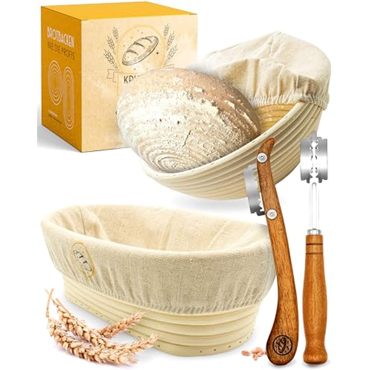 Entdecke die Kunst des Brotbackens mit dem KRUSTENZAUBER Gärkörbchen Gärkorb Bäckermesser Set