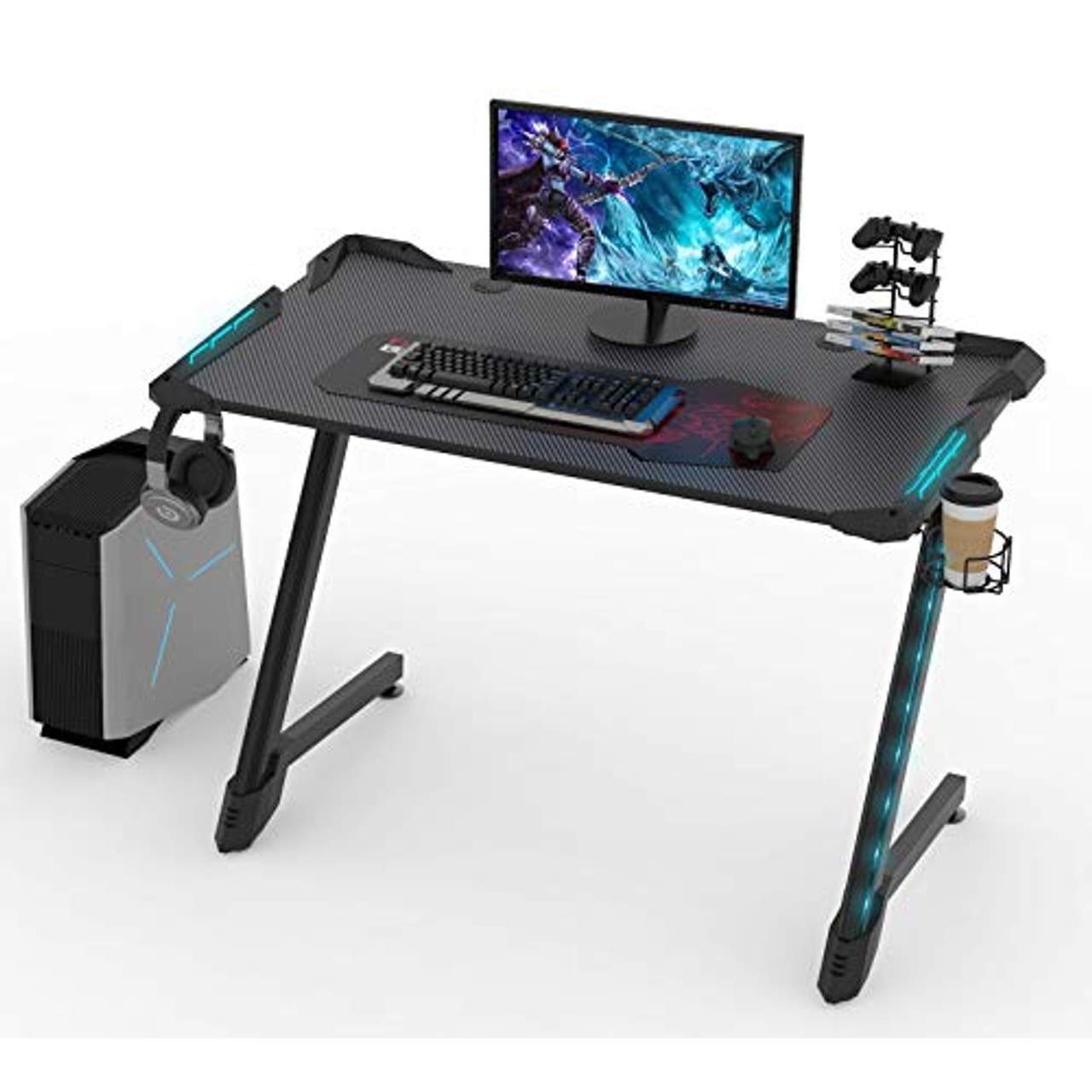 - Gebaut für Profi-Gamer: Dieser Gaming-Tisch wird mit einer Reihe von praktischem Zubehör geliefert, das speziell für Profi-Gamer entwickelt wurde, darunter ein Getränkehalter, ein Kopfhörerhaken, ein Controller-Ständer und ein großes Mauspad. So ist sichergestellt, dass Ihre gesamte Gaming-Ausrüstung leicht zu erreichen ist und mühelos verwendet werden kann.