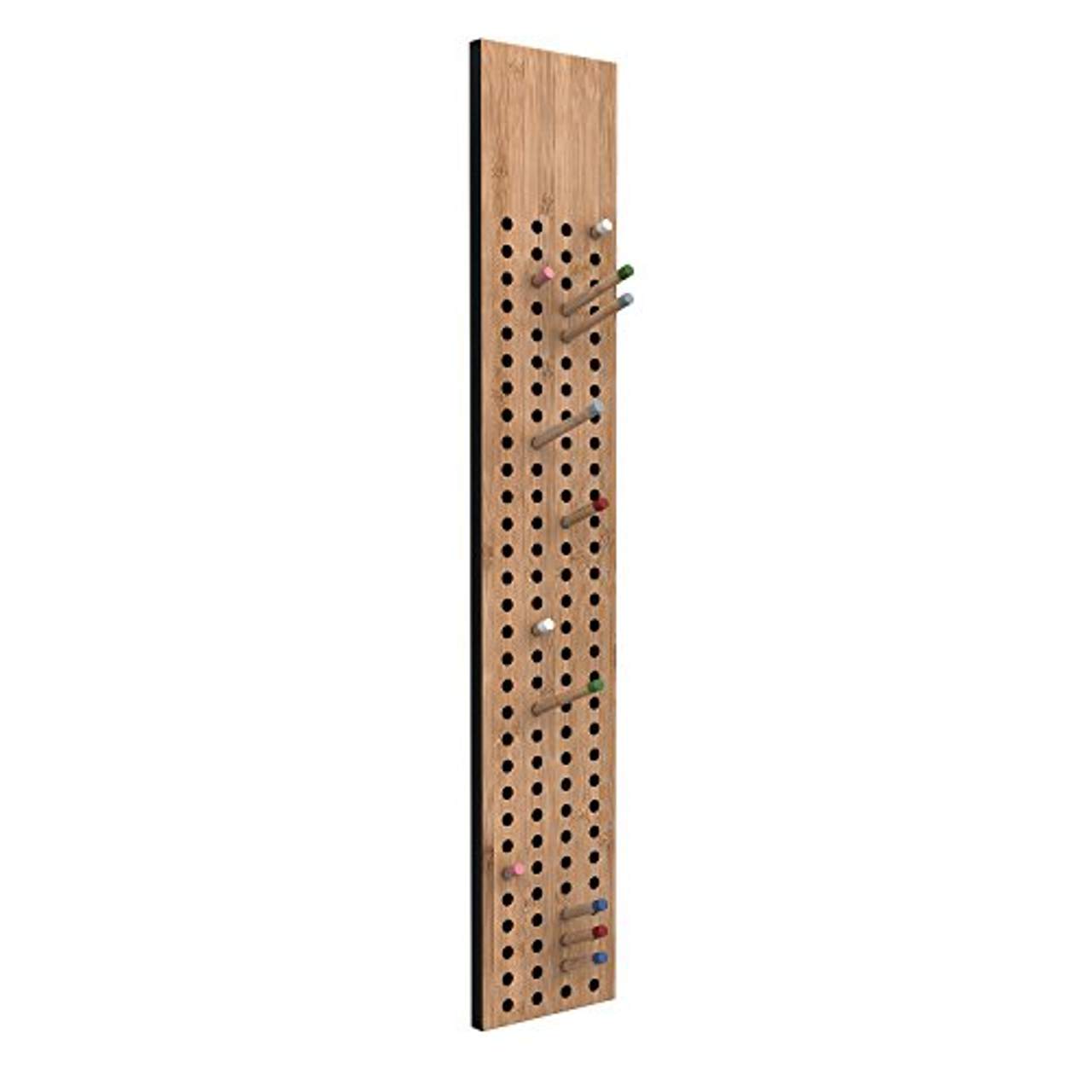 Dänische Wand-Garderobe modern aus zertifiziertem Bambus HolzDetailsinkl. 12 Pins in 3 Größen: 4 x 40 mm 4 x 80 mm 4 x 12 mm in unterschiedlichen Farben Wandbefestigung nicht im Lieferumfang enthalten!Material