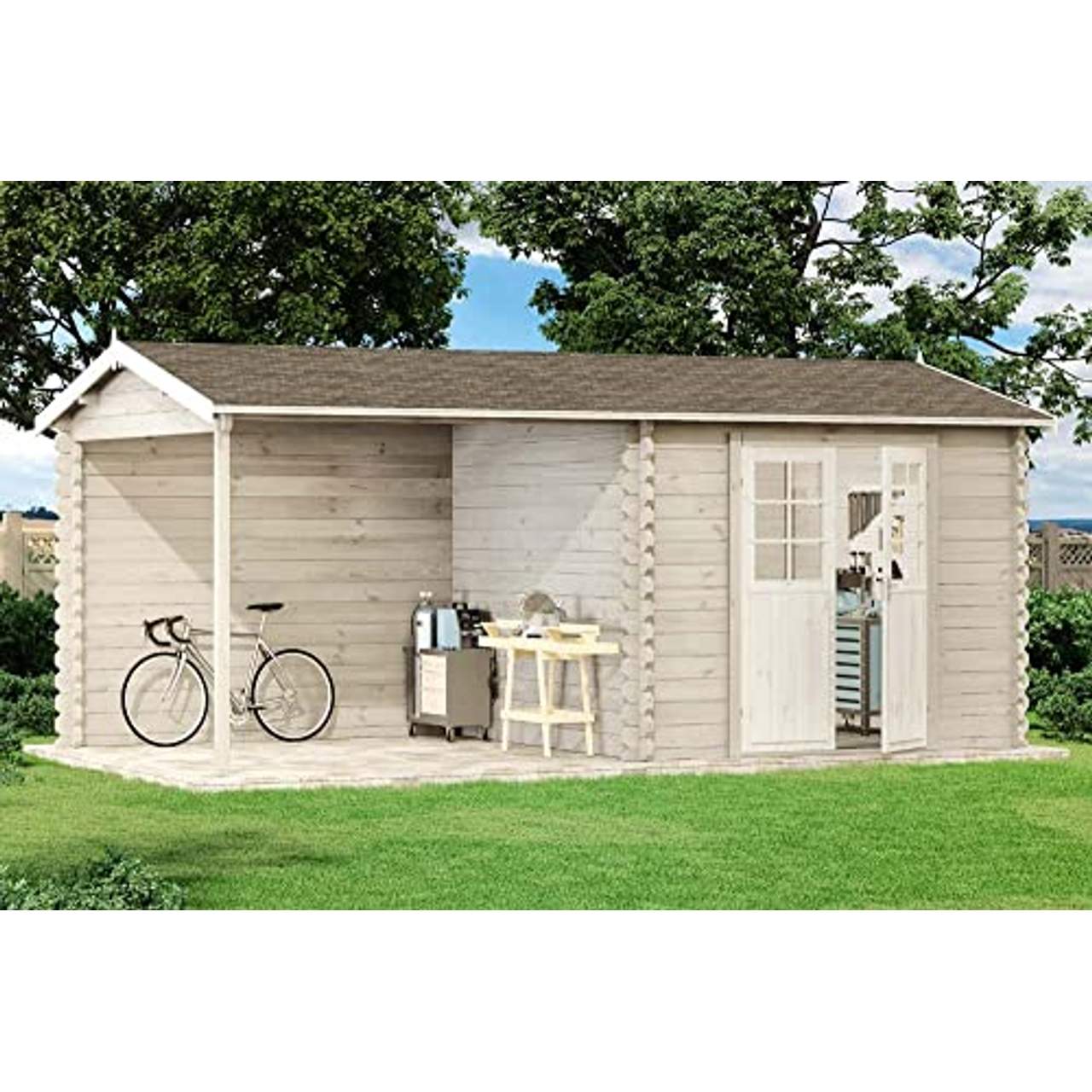 - Vielseitig einsetzbar: Dieses Gartenhaus ist vielseitig verwendbar, z.B. als Partyraum, Gästehaus oder zur Aufbewahrung von Gartenmöbeln und -geräten.