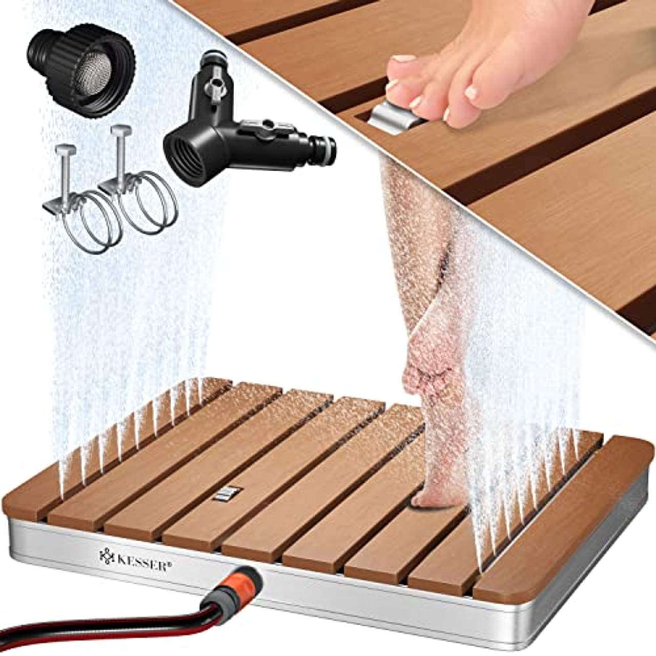 - Wetterfeste Qualität: Die KESSER Gartendusche Bodendusche ist aus UV-beständigem Material gefertigt, so dass sie witterungsbeständig ist und ihre Optik über Jahre hinweg beibehält. Eloxiertes Aluminium an der Unterseite und WPC als Oberfläche schützen vor UV-Strahlung, Feuchtigkeit und Schimmel.