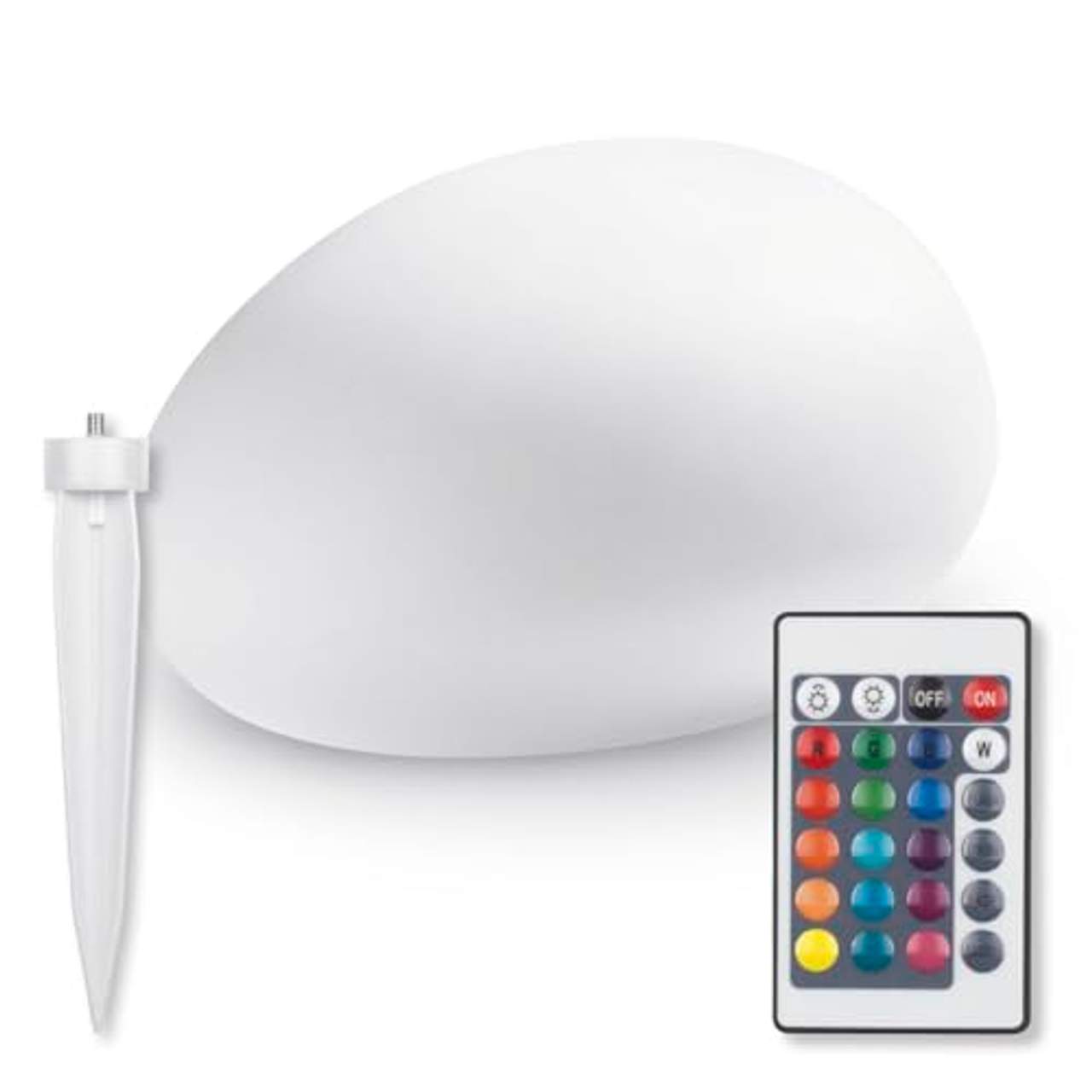 - Farbwechsel: Die Steinleuchte kann 12 verschiedene Mischfarben annehmen und lässt sich per Fernbedienung mit drei Funktionen steuern