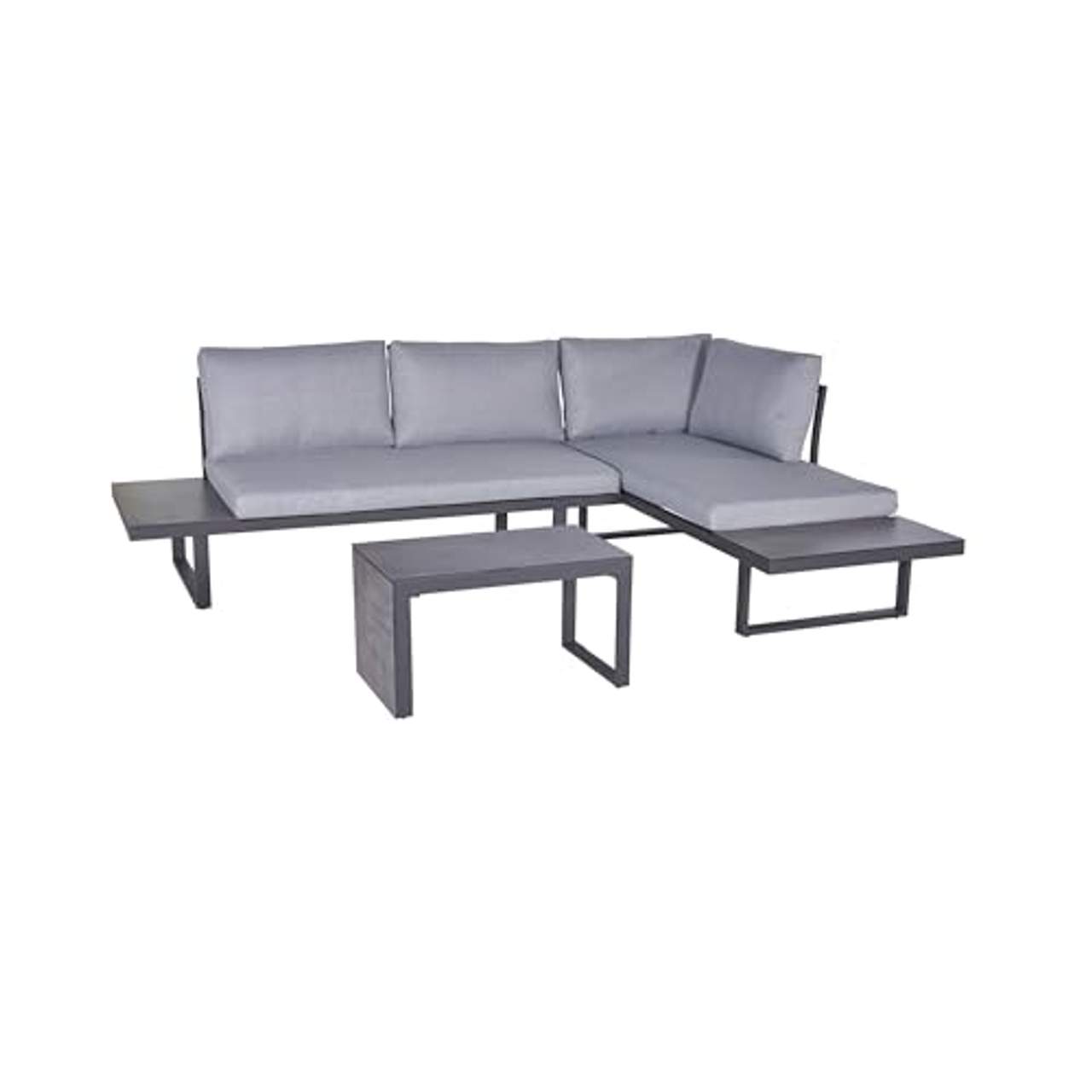 LC Garden »Sungardo« Gartenlounge Set 3tlgLC Garden »Sungardo« Gartenlounge Set 3tlg. Anthrazit aus Aluminium Akazie Schaffen Sie einen neuen Ruhepol oder eine Oase in Ihrem Garten. Mit der modernen Gartenlounge Sungardo von LC Garden kreieren Sie einen gemütlichen Ort, der zum Entspannen, wohlfühlen oder feiern im Freien einlädt.Das Gestell der 3tlg. Sitzecke besteht aus pulverbeschichtetem Aluminium in Anthrazit, welches die Lounge pflegeleicht und wetterbeständig macht. Ein besonderes Highlight sind die vielfältigen Stellmöglichkeiten der einzelnen Elemente. Somit können Sie sich Ihre Lounge individuell gestalten.Der Couchtisch kann sowohl quer als auch hochkant als Ablage dienen. Für eine längere Haltbarkeit empfehlen wir die Verwendung einer Schutzhülle. So schützen Sie auch Ihre Loungeecke vor Schmutz und Verwitterung. Holen Sie sich jetzt das LC Garden »Sungardo« Gartenlounge Set 3tlg. Anthrazit aus Aluminium Akazie und verschönern Sie Ihren Garten! Maße: Tiefe: ca. 78 cm Breite: ca. 175/ 27 cm Höhe: ca. 70 cm Sitzkissen: ca. 80 cm Material: Aluminium, Akazienholz, Bezug: 100% Polyester / Polsterung: Schaumstoff Sitzbreite: ca. 70 cm Sitztiefe: ca. 75 cm Maße Tisch (2 Funktionen): Tiefe: ca. 35 cm Breite: ca. 70 cm/ 41 cm Höhe: ca. 41 cm/ 70 cm Kombinieren Sie diesen Artikel mit allen weiteren Outdoor Möbeln von LC Garden. Als Fachhändler beraten wir Sie gerne bei Fragen zur Zusammenstellung und erstellen Ihnen ein kosten- und bedarfsorientiertes Angebot.Beachten Sie bitte auch unsere attraktiven Setangebote. Das Loungeset wird zerlegt per Spedition mit vorheriger Terminabsprache an Sie geliefert. Bitte geben Sie hierfür eine gültige Rufnummer an.