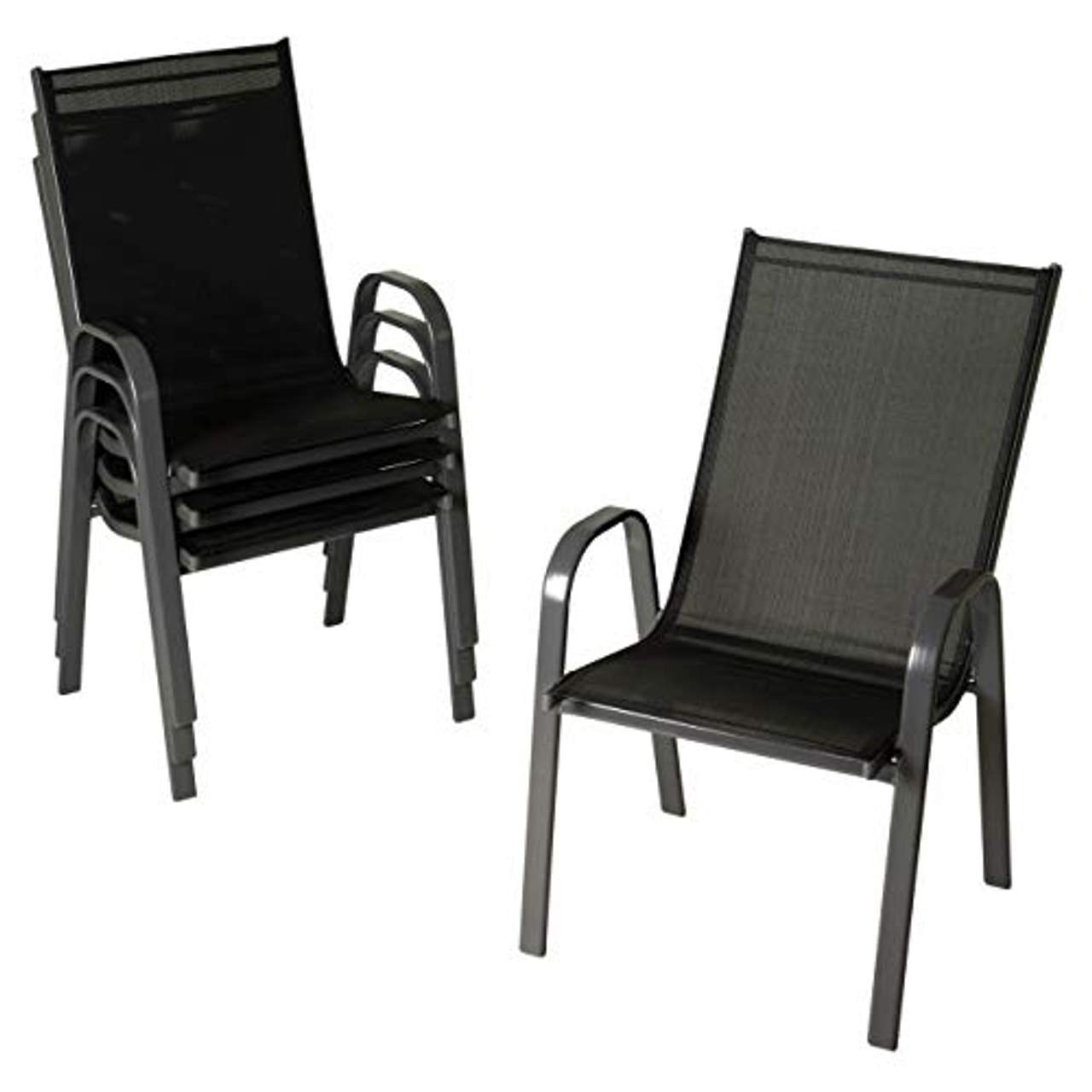 Die Nexos 4er Set Gartenstuhl Stühle bestehen aus Kunststoff Textilene in Kombination mit Stahlrahmen. Diese Materialkombination macht die Stühle stabil und dennoch leicht, so dass sie auch dann leicht zu transportieren sind, wenn mehrere Stühle zusammen gestapelt werden.