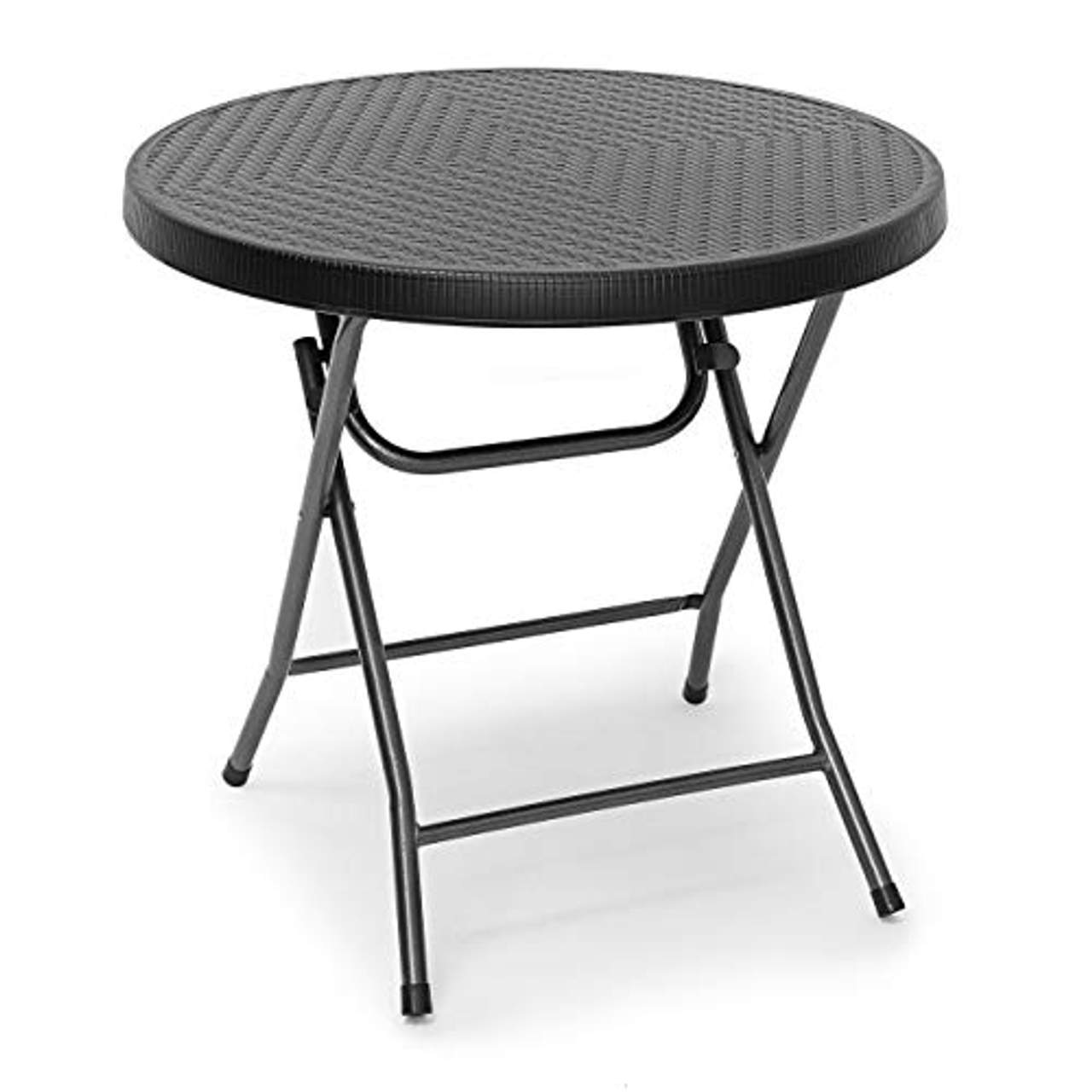 Der Relaxdays Gartentisch klappbar Bastian ist ein runder Gartentisch. Er ist aus wetterfestem Kunststoff in Rattan-Optik gefertigt und hat eine schwarze Oberfläche. Er lässt sich platzsparend zusammenklappen und ist somit ideal für Terrassen, Balkone, Camping, Gärten oder auch in Innenräumen auf Fliesen. Der Metallrahmen sorgt für Stabilität und die an den Füßen angebrachten Gummipuffer für einen sicheren Stand. Die maximale Belastbarkeit beträgt 80 kg und der Tisch ist in verschiedenen Formen und Farben erhältlich.