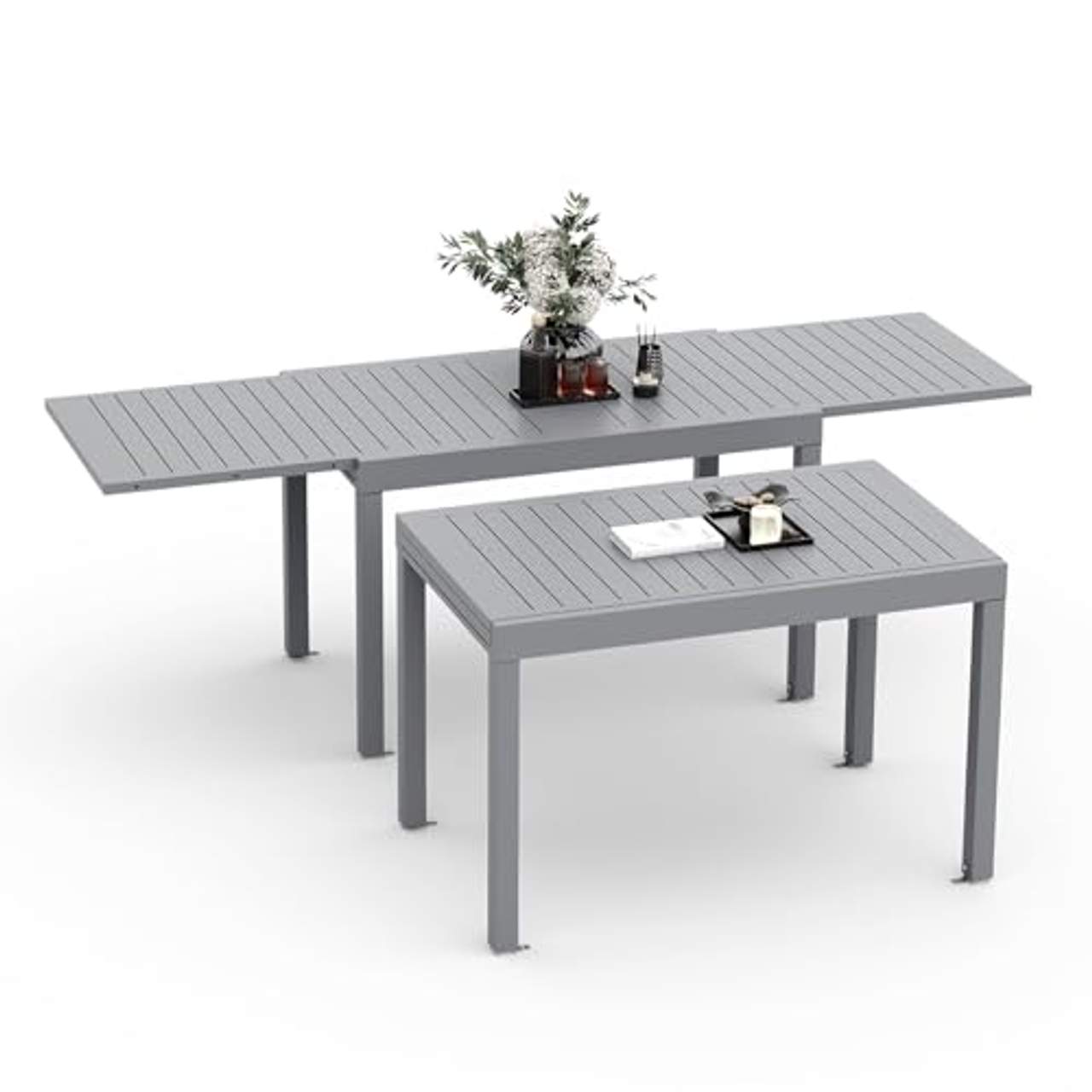 - Langlebige Konstruktion: Dieser ausziehbare Gartentisch besteht aus einer verschleißfesten Aluminiumlegierung und ist so konstruiert, dass er den harten Bedingungen im Freien standhält. Die doppelte Anti-Rost-Beschichtung aus Öko-Beschichtung und matt gebürsteter Pulverbeschichtung sorgt für eine außergewöhnliche Widerstandsfähigkeit gegen Rost und Korrosion und stellt sicher, dass der Tisch auch bei unterschiedlichen Witterungsbedingungen in einem hervorragenden Zustand bleibt. Diese Beständigkeit führt zu einer langen Lebensdauer des Produkts, so dass die Kunden in ein zuverlässiges Möbelstück investieren können, das ihnen viele Jahre lang gute Dienste leisten wird.