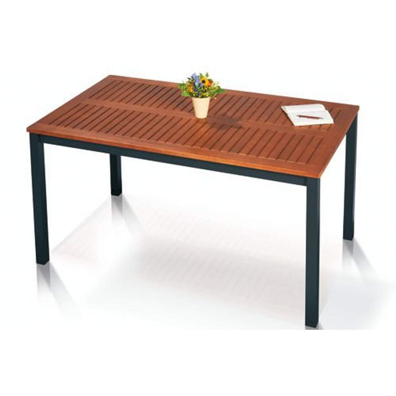 Gardenline Gartentisch EukalyptusAlu- Gartentisch mit Holzplatte Hohe Standfestigkeit. Maße ca.: 150 x 90 cm Höhe ca.: 74 cm 1 Tischbein höhenausgleichbar Die Tisch Beine sind zum abschrauben Tischplatte aus Eukalyptusholz