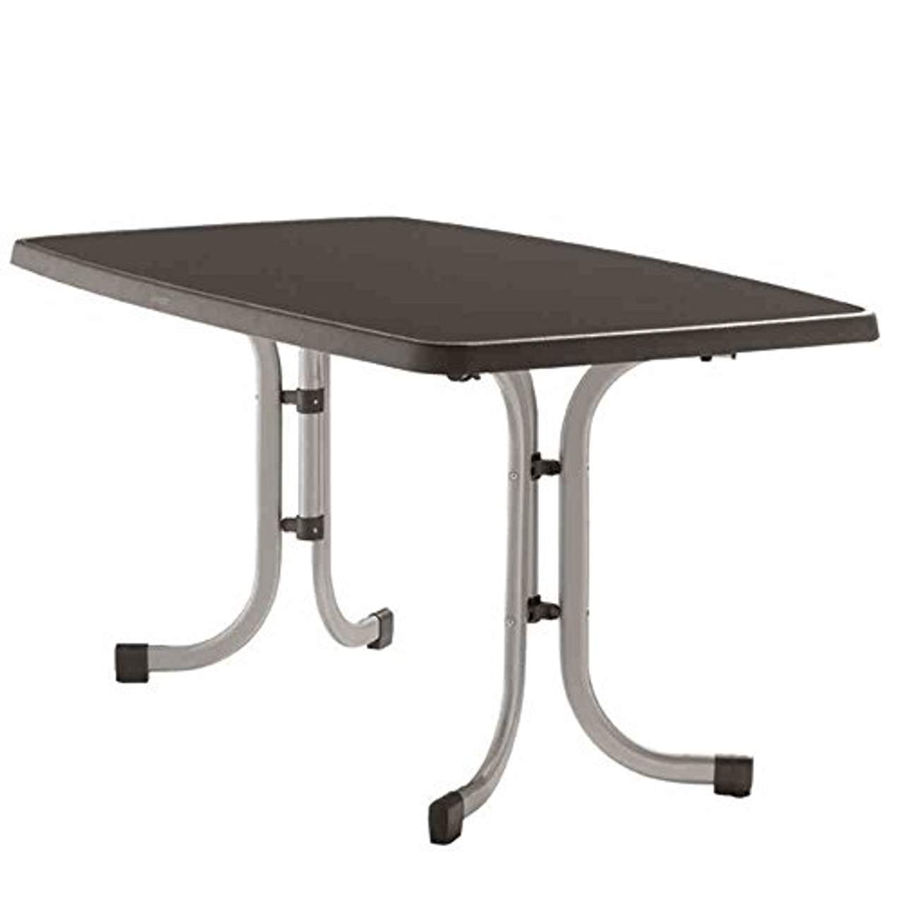 Sieger 253/A Boulevard-KlapptischDer Boulevard-Klapptisch 150 cm x 90 cm ist platzsparend zusammenklappbar und besticht durch eine wetterfeste, hitze-und kältebeständige, robuste mecalit-Pro Tischplatte in Schieferdekor Anthrazit mit schlagfesten Kanten. Die Tischoberfläche aus Melamin besitzt entgegen reinen Kunststoffplatten die Qualitätseigenschaften von Küchenarbeitsplatten und ist strapazierfähig und pflegeleicht.Das hochwertig beschichtete graphitfarbene Stahlrohrgestell komplettiert das Bild dieses dauerhaft wetterfesten Tisches, der den härtesten Anforderungen im Außenbereich standhält. Einfach und montagefrei aufzubauen. TÜV Süd - geprüft (Produktion überwacht, Sicherheit geprüft)