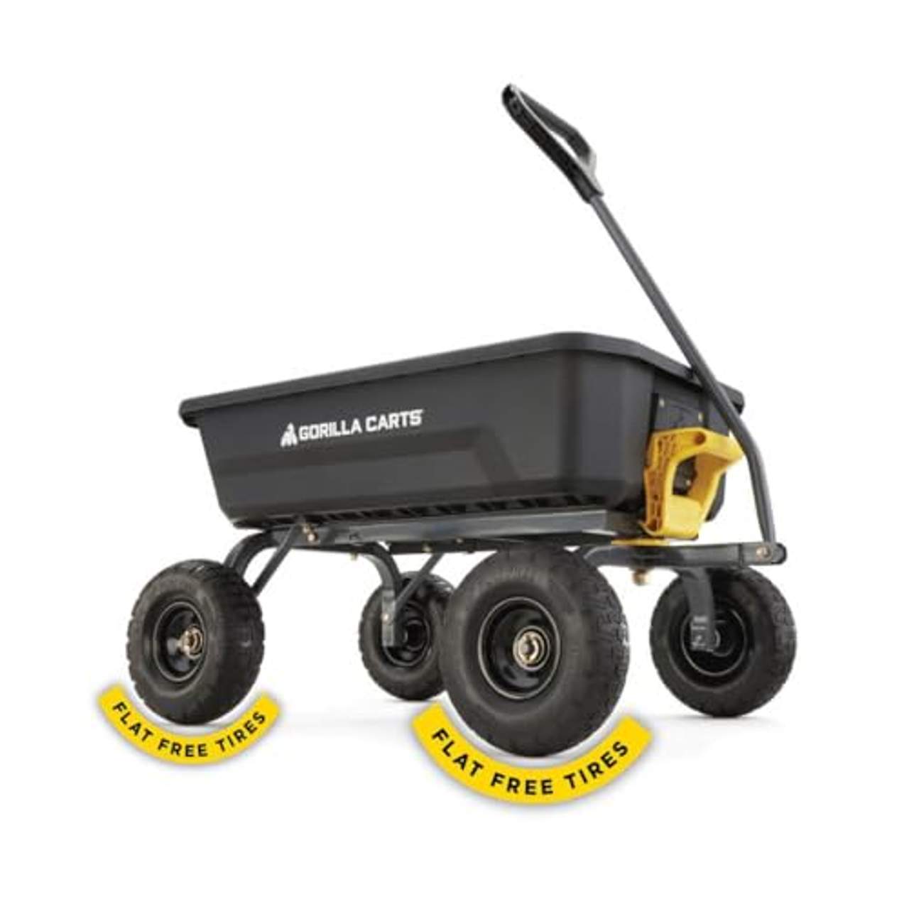 - Wartungsfreie Reifen: Die 25,4-cm-Reifen des Gorilla Carts 4GCG-NF Poly Dump Cart sind wartungsfrei, was bedeutet, dass der Benutzer nie wieder Luft nachfüllen muss. Dies gewährleistet eine zuverlässige und effiziente Leistung über einen langen Zeitraum.