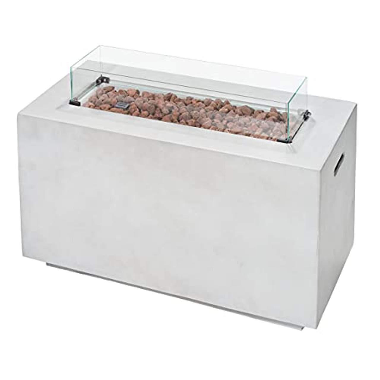 Der Feuertisch besteht aus hochwertigen, regenbeständigen Materialien, die so konzipiert sind, dass sie bei minimaler Wartung viele Jahre lang halten. Das Gehäuse des Feuertisches ist aus pulverbeschichtetem Stahl oder Aluminium, während der Windschutz und der Flammenschutz aus gehärtetem Glas bestehen, das sowohl langlebig als auch elegant ist.