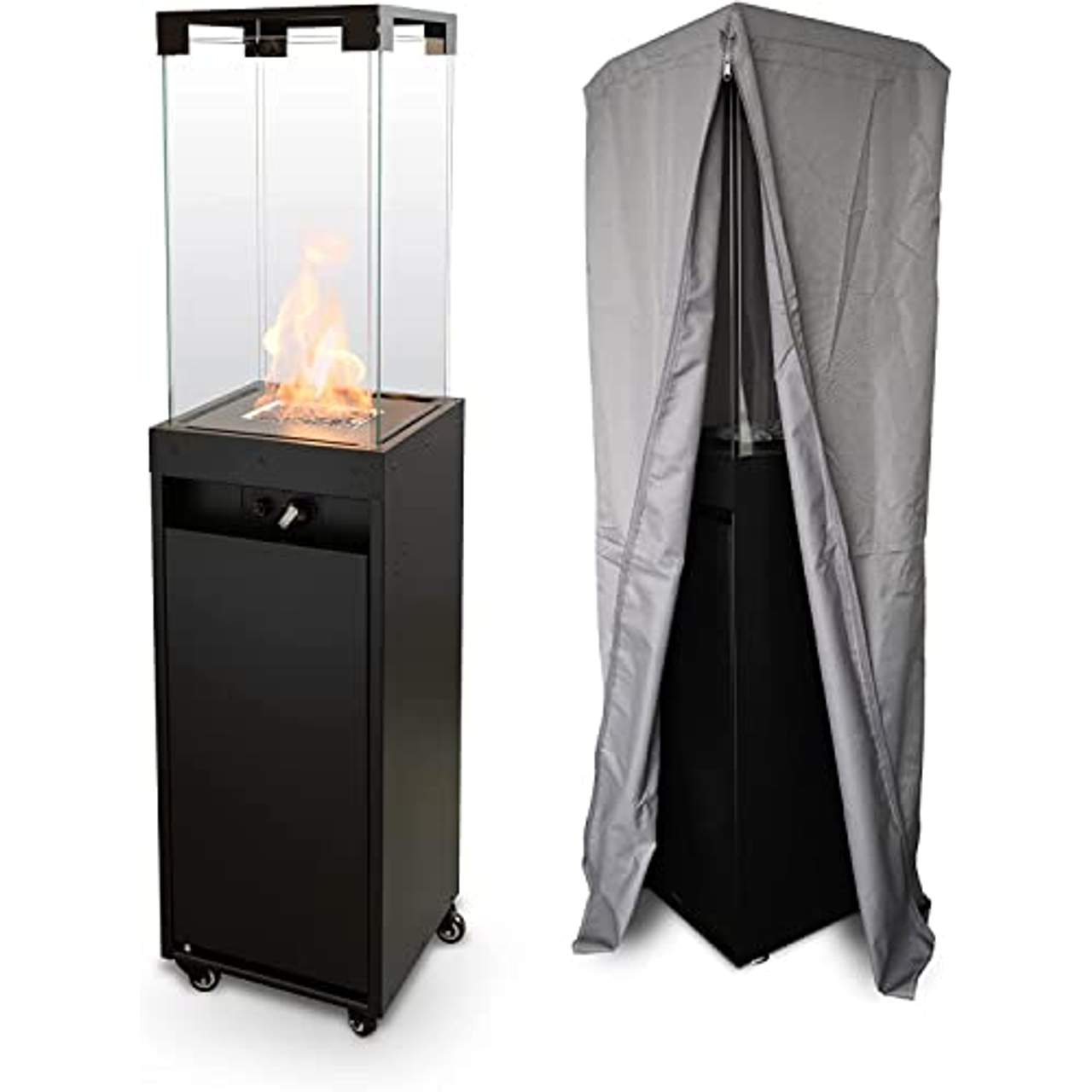 Planika Faro schwarzer tragbarer und freistehender Gas-TerrassenheizerDer portable Faro Gaskamin von Planika imÜberblick: Hochwertiger Terrassenofen aus dem Hause Planika Betrieb ausschließlich im Outdoor-Bereich Der Kamin ist nicht resistent gegen Witterungseinflüsse wie Regen, Wind oder Schnee. Zum optimalen Schutz vor Wind und Wetter empfehlen wir zusätzlich die Verwendung einer Schutzhülle Fahrbarer Feuergenuss durch die im Lieferumfang enthaltenen Rollen Regulierbare Flammenhöhe Hitzebeständiges Gehäuse mit großzügiger Panorama-Rundumeinsicht Steuerung über Panel am Faro Zündung:Piezo (aaa-batterien notwendig) 5 und 11 kg Flüssiggasflaschen (Butan/Propan) möglich Stimmungsvolles Flammenbild über einen Zeitraum von bis zu 55 Stunden Nennwärmeleistung (NWL): max. 5 - 8 kW Material: pulverbeschichtetes Stahlgehäuse in schwarz robustes Keramikglas Maße (B x H x T): 36,0 x 149,5 x 36,0 cm Gewicht: 20 kg Optional auch mit kleinem Tischchen erhältlich Lieferumfang: Faro Gasfeuerstelle, Verglasung, Gasschlauch