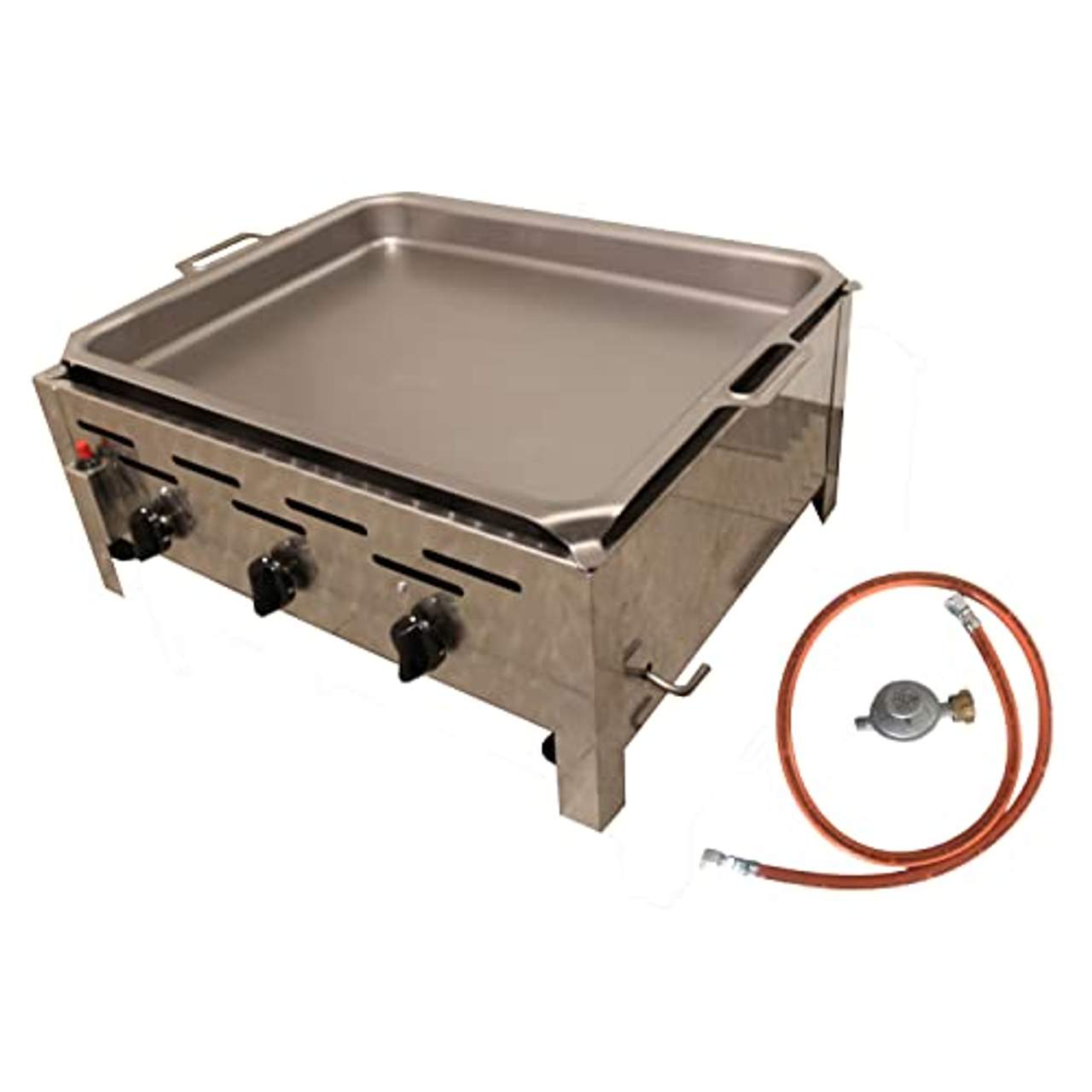- Umfassendes Paket: Das Produkt wird mit einem umfassenden Paket geliefert, das den Gasgrill mit 3 Flammen, einen Gastro-Bräter mit Pfanne, einen Gasschlauch und einen Druckminderer sowie eine große Stahlpfanne enthält - alles, was Sie brauchen, um sofort loszulegen!