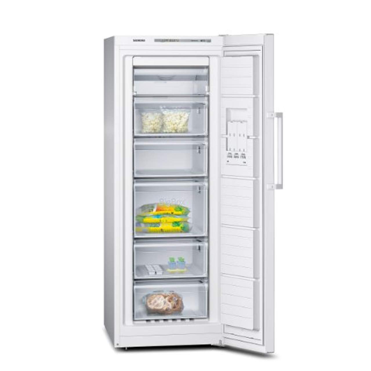 Siemens iQ300 GS29NVW30 Gefrierschrank A++Die noFrost-Technik gegen Eis- und Reifbildung, damit Sie nie mehr abtauen müssen. Ein A+±Kältegerät kühlt sehr effizient. Elektronische Temperaturregelung: einfach und übersichtlich die Zieltemperatur einstellen. Alle Gefrierfächer und Glasplatten sind einfach herausnehmbar, die varioZone stellt sich flexibel auf Ihre Platzansprüche ein. Viel Platz bietet die bigBox um großes Gefriergut optimal zu lagern und zu stapeln.Die Kältegeräte mit 90 ° Türöffnungswinkel, lassen sich bündig an jede Wand oder in jede Nische stellen.