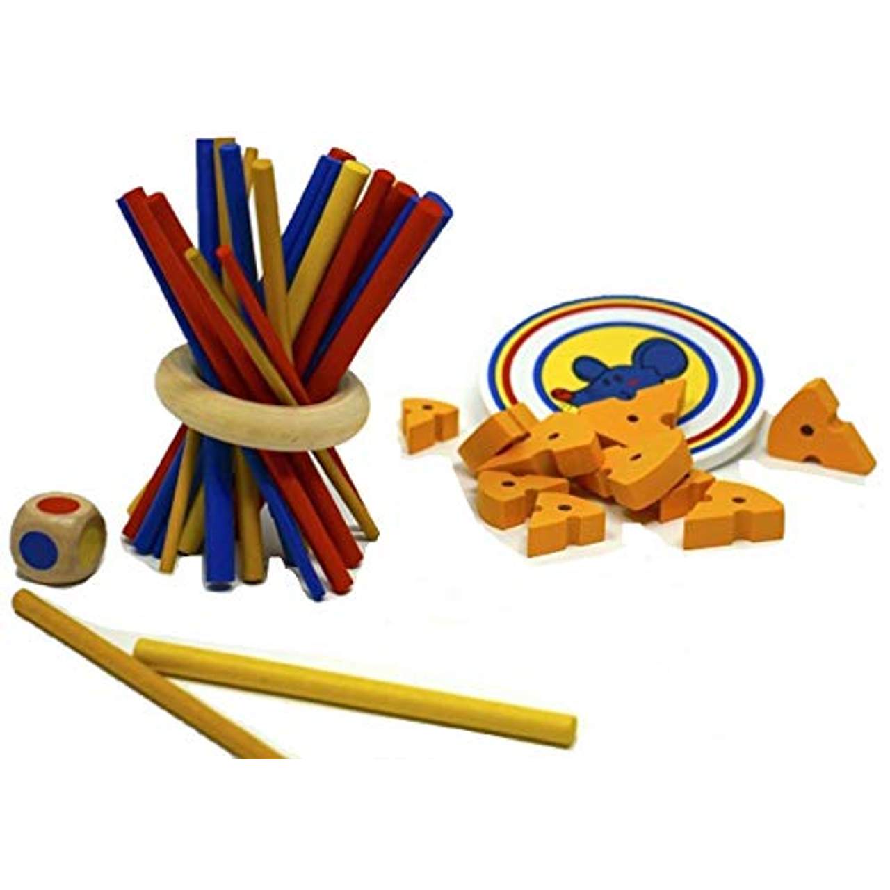 Minis Kreativ Zitter Nicht ist ein Geschicklichkeitsspiel, das für 2-6 Spieler ab 3 Jahren geeignet ist. Es besteht aus 27 bunten Holzstäbchen, 1 Ring und 1 Würfel. Das Ziel des Spiels ist es, nicht zu zittern, während du vorsichtig ein Stäbchen nach dem anderen aus dem Ring ziehst. Außerdem gibt es ein zusätzliches Spiel namens Mäusespiel Käsebrett, bei dem es darum geht, lustige Käsetürme mit 10 Käsestücken auf einem Teller zu bauen. Dieses Doppelpack fördert die Entwicklung durch Konzentration und Koordination und macht außerdem viel Spaß.