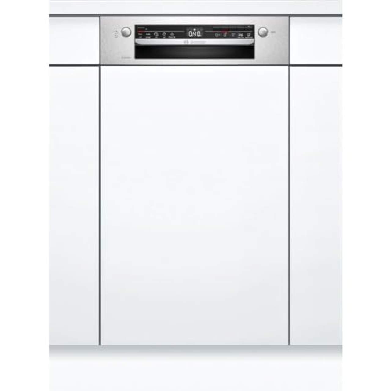 Bosch SPI2IKS10E Serie 2 Smarter Geschirrspüler integriertDer SPI2IKS10E von BOSCH ist ein teilintegrierbarer Geschirrspüler. Ist das Gerät mit den Abmessungen von 44,8 x 81,5-87,5 x 57,3 cm (BxHxT) ein besonders schmales Gerät. 9 Maßgedecke passen ins Gerät, dadurch wird es den Ansprüchen von Haushalten bis zu drei Personen auf alle Fälle gerecht. Das Gerät arbeitet durch das Automatikprogramm sehr sparsam. Der Verschmutzungsgrad wird über Sensoren analysiert und der Spülvorgang an die jeweiligen Voraussetzungen angepasst.Auch stark verschmutztes Ess- und Kochgeschirr reinigt das Gerät durch das Intensivprogramm und erwirkt ein glänzendes Ergebnis. Wasser- und Stromverbrauch werden auf einem äußerst umweltschonenden Niveau gehalten. Verantwortlich dafür ist die Eco-Technologie des Geräts. Das Wasserschutzsystem stoppt im Notfall die Wasserzufuhr.Mit der Startzeitvorwahl lässt sich im Voraus bestimmen, zu welcher Zeit das ausgewählte Programm starten soll. Das Gerät ist eine absolut zuverlässige Hilfe Tag für Tag. Diejenigen, die einen leistungsstarken und ausdauernden Geschirrspüler suchen, liegen hier genau richtig.