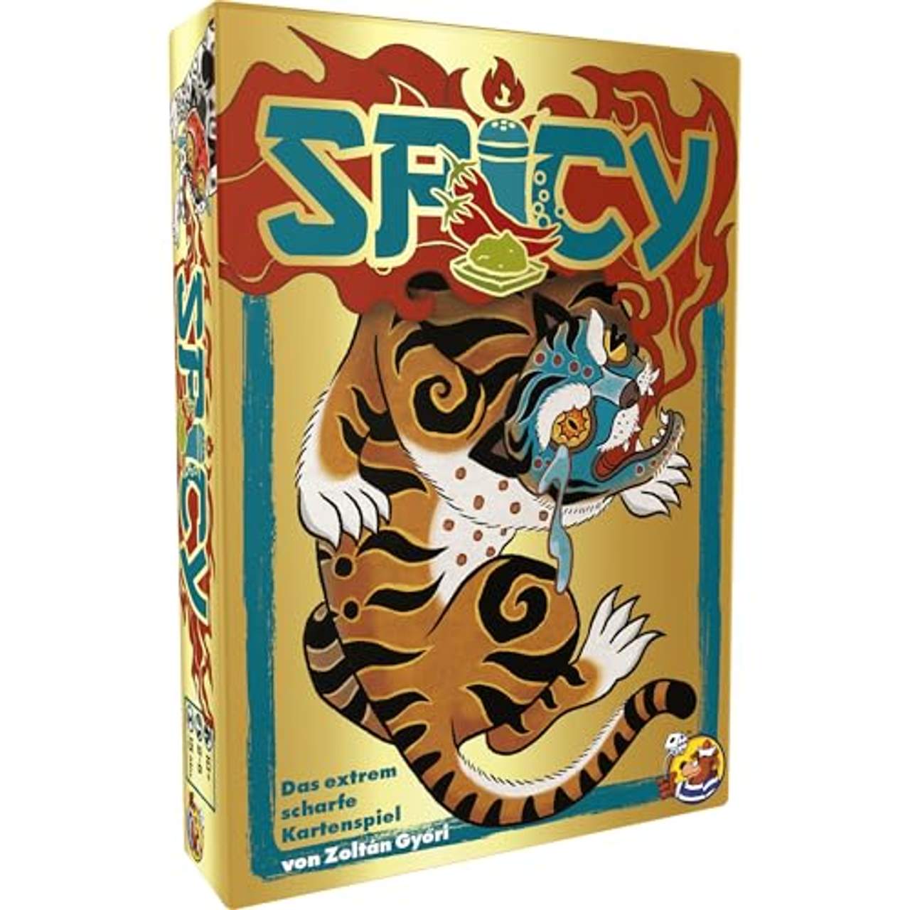 Spicy HeidelBÄR Games'Spicy ist ein Bluff-Kartenspiel für 2-6 Spieler. Die Karten werden verdeckt ausgespielt, sodass man bei der Ansage seiner Karte schon mal flunkern kann. Doch bei diesem cleveren Kartenspiel geht es nicht einfach nur darum, überzeugend zu bluffen.Denn eine Karte, die zumindest halb richtig ist, kann man bei geschicktem Abspielen von der Kartenhand fast immer spielen. Da gilt es taktisch zu überlegen, mit welcher Karte man wohl durchkommt. Neben dem eigentlichen Spiel enthält Spicy 6 Spielvariantenkarten, doch auch ohne diese ist ein hoher Wiederspielreiz garantiert. Die Karten sind liebevoll mit insgesamt 40 eigenständigen Illustrationen versehen. Außerdem glänzt nicht nur die Spielschachtel in schickem Metallic-Gold, sondern auch die Kartenrückseiten ziert ein goldfarbener Sonderdruck.’