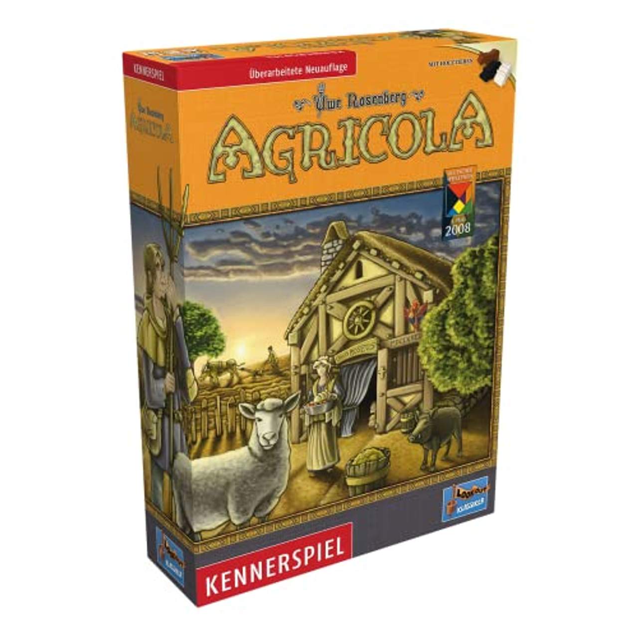 Lookout Games 22160028 AgricolaAgricola:Das 17. Jahrhundert: Keine einfache Zeit für Landwirte. Der kleine Hof mit einem Holzhaus muss bewirtschaftet werden. Ackerbau und Viehzucht sorgen für Nahrung, aber auch das Wohnhaus soll ausgebaut werden, damit mehr Familienmitglieder Platz haben. Glücklicherweise können auch die eigenen Familienmitglieder ausbildet werden, was wichtige Vorteile bringt.Ob als Bäcker, Schafbauer oder Schweineflüsterer, die Entscheidung liegt ganz bei dir. Denn letztendlich gewinnt, wer seine Aktionen am cleversten auswählt und seinen Hof am besten ausbaut.Agricola ist ein Entwicklungsspiel, mit dem die Spieler einen mittelalterlichen Bauernhof aufbauen und betreiben sollen.Ackerbau und Viehzucht sorgen für Nahrung, zusätzliche Familienmitglieder können zu Spezialisten ausgebildet werden, dafür muss der Hof ausgebaut werden, um den nötigen Platz zu schaffen. Nur ein intakter und gut organisierter Hof führt zum Sieg. Die Materialfülle bietet den Spielern eine enorme Vielzahl von Möglichkeiten, die jede Partie zu einer neuen Herausforderung machen.Ein Spiel für anspruchsvolle Spieler.Inhalt: 9 Spielpläne (doppelseitig), 138 Rohstoffsteine, 36 Nährwertmarken, 54 Tiersteine, 25 Personensteine, 75 Zäune, 20 Ställe, 24 Hüttenplättchen, 33 Steinhaus-/Ackerplättchen, 3 Gast-/Anspruchsmarken, 9 Multiplikationsmarken, 1 Wertungsblock, 1 Startspielerstein, 360 Karten, 1 Spielregel