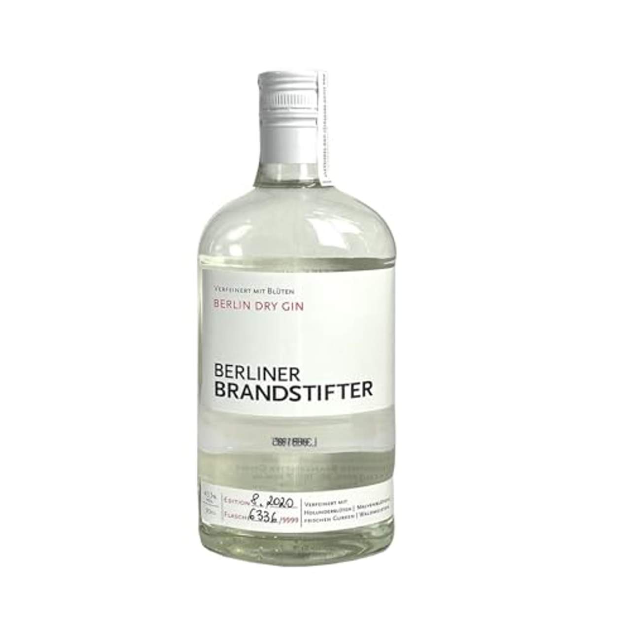 Berliner Brandstifter Dry GinDer Berliner Brandstifter Dry Gin ist verfeinert mit Berlins Blüten und ist ein außergewöhnlich weicher, floraler und frischer Wacholder Dry Gin. Der 7fach gefilterte Berliner Brandstifter Gin ist ein aussergewöhnlich weicher, floraler und frischer Wacholder Dry Gin.Sein eigenständiger Charakter wird durch typische Berliner Anklänge von Holunderblüten, Malvenblüten, frischen Gurken und Waldmeister abgerundet. Die verwendeten Botanicals werden auf Berliner Ackerland angebaut und von Hand gepflückt. Der Berlin Dry Gin wird in kleinen Auflagen produziert und zur Qualitätsgarantie von Hand abgefüllt und nummeriert.
