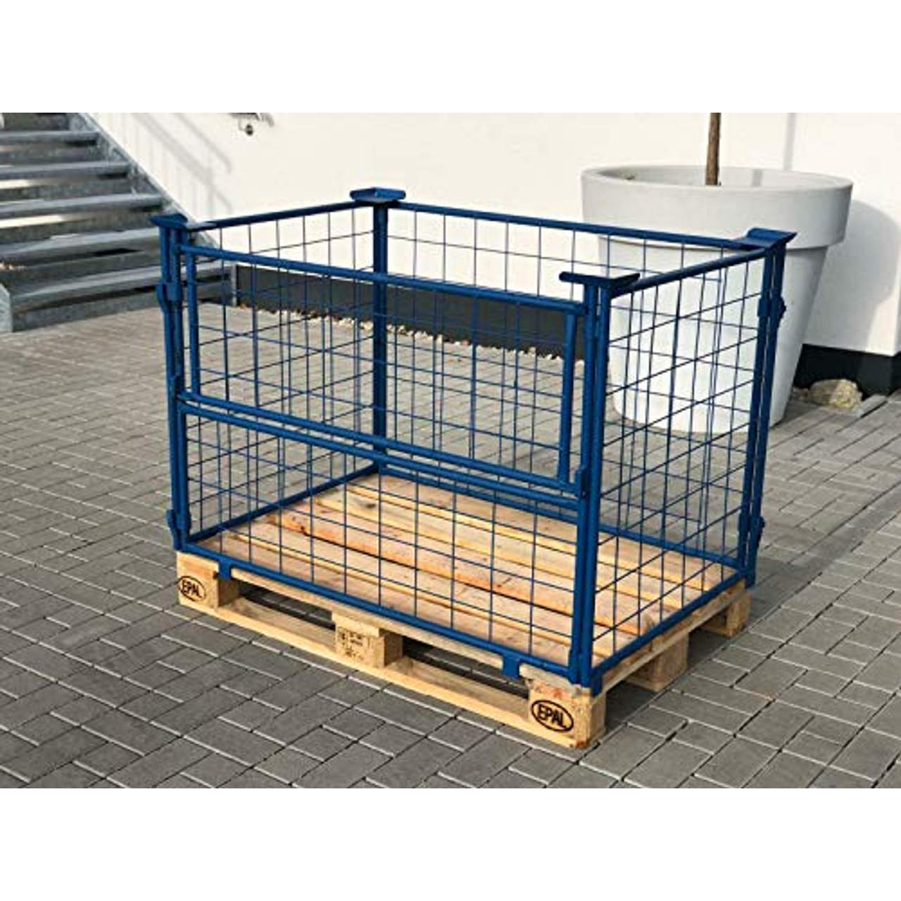 Systafex Palettenaufsatzrahmen Gitter-aufsatzrahmen GitterboxpaletteLieferumfang: 1x Gitterboxaufsatz 120 x 80 x 80 cm faltbar (Palette nicht im Lieferumfang enthalten) Beschreibung: Gitteraufsatzrahme mit 800mm Nutzhöhe Passgenau auf Standard Europalette (1200x800mm) und 3-fach stapelbar Gittermaschung beträgt 100x100mm und ist 3,8mm stark Diese Gitteraufsatzrahmen sind faltbar, daher praktisch zum zwischenlagern Auf Frontseite befindet sich eine halbe Klappe zur einfachen und praktischen Entnahme und Befüllen des Inhalts. Technische Daten: Abmessungen: 1200x800x800mm Farbe: Blau Material: Stahl Gewicht: 25 Kg Nutzlast: 800 Kg Auflast:1600 Kg Maschung (Breite x Höhe): ca. 10 x 8 cm Bitte beachten: Alle Boxen sind neue und unbenutzt frisch aus der Produktion. Die blaue Farbe ist wie man aus dem Bau kennt unsauber angebracht. Durch die Lagerung und Transport gibt es oft Lackschäden, Kratzer usw.Das hat aber auf Funktionalität und Verwendung keinen Einfluss.