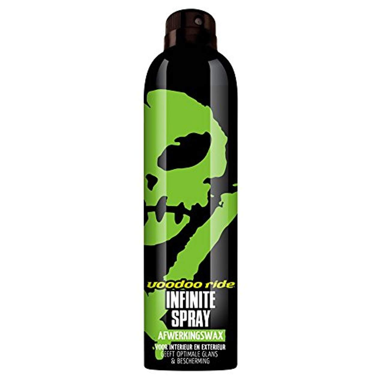 Voodoo Ride VR110251 Infinite Spray Detailer 400ml-DeckwachsVoor interieur en exterieur. Geeft optimale glans & bescherming Wil je dat het glanst? Ons krachtig topproduct reinigt, beschermt en is te gebruiken op alle oppervlaktes van je wagen, zowel binnen- als buitenkant. Het oppervlak zal fantastisch glanzen en is optimaal beschermd. Wat wil je nog meer?Laat geen vettige resten na en geeft een waterafstotende, antistatische en UV beschermende laag. Je kunt het gebruiken op je auto, je motor, ja, zelfs op je boot! Gebruiksaanwijzing: Te gebruiken op alle gladde binnen- en buitenoppervlaktes (carrosserie, plastic, leder, ramen, metaal, enz.) Uitzondering:niet gebruiken op stoffen bekleding. Vooraf kun je een test doen op een discrete plaats om het resultaat te bekijken. De spray goed schudden voor gebruik. Verstuiven op de te behandelen oppervlakte en bij voorkeur aanbrengen met de microvezel X-tra Voodoo Ride of een zachte, niet pluizige doek.Dit product bevat: - 400 ml Voodoo Ride Infinite Spray #VR110251 - Productcode: #VR110251 - EAN: 3352340119155