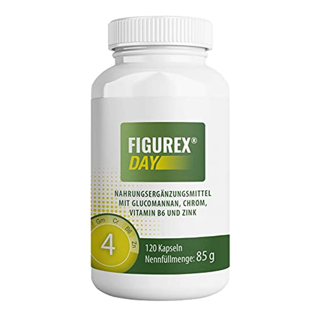 FIGUREX Day Stoffwechsel Kur KapselnNatürliche Glucomannan Kapseln - die pflanzlichen Tabletten zum Abnehmen* Umfassende Experten Formulierung für Gewichtsverlust* und Stoffwechsel** Vitamin B6 trägt zu einem normalen Energiestoffwechsel bei Chrom trägt zur Aufrechterhaltung eines normalen Blutzuckerspiegels bei Figurex Day - Abnehmen Tabletten für Frauen und Männer! Mit Figurex Day Kapseln und nachgewiesener Wirkung von Glucomannan endlich Abnehmen! Für alle, die ihre Wunschgewicht erreichen wollen! Der pflanzliche Ballaststoff Glucomannan stoppt den Hunger und hilft so weniger Kalorien und Kohlenhydrate zu sich zu nehmen.Figurex Day wirkt mit der Zutat Glucomannan laut der Europäischen Behörde für Lebensmittelsicherheit nachweislich: *Glucomannan trägt im Rahmen einer kalorienarmen Ernährung zu Gewichtsverlust bei! (von der Efsa (Europäische Behörde für Lebensmittelsicherheit) genehmigte und in ein EU-Register eingetragene gesundheitsbezogene Aussage). Stoffwechsel 6-fach: **Ergänzt mit mit Vitamin B6 für einen normalen Energiestoffwechsel, Homocystein- Stoffwechsel, Eiweiß- und Glycogenstoffwechsel, Regulierung der Hormontätigkeit und zur Verringerung von Müdigkeit und Ermüdung sowie Zink für einen normalen Kohlenhydrat-Stoffwechsel, Stoffwechsel von Makronährstoffen und Fettsäurestoffwechsel! Wichtig! Ausgeglichener Blutzuckerspiegel:Ein ausgeglichen Blutzuckerspiegel ist ein wichtiges Element und wird oft vernachlässigt - deshalb enthält Figurex Day das elementare Spurenelement Chrom. Denn Chrom trägt zur Aufrechterhaltung eines normalen Blutzuckerspiegels bei! Abnehmen kann auch einfach sein! Figurex Day sollte idealerweise mit Figurex Morning (für den Morgen) und Figurex Night (für die Nacht) kombiniert werden.