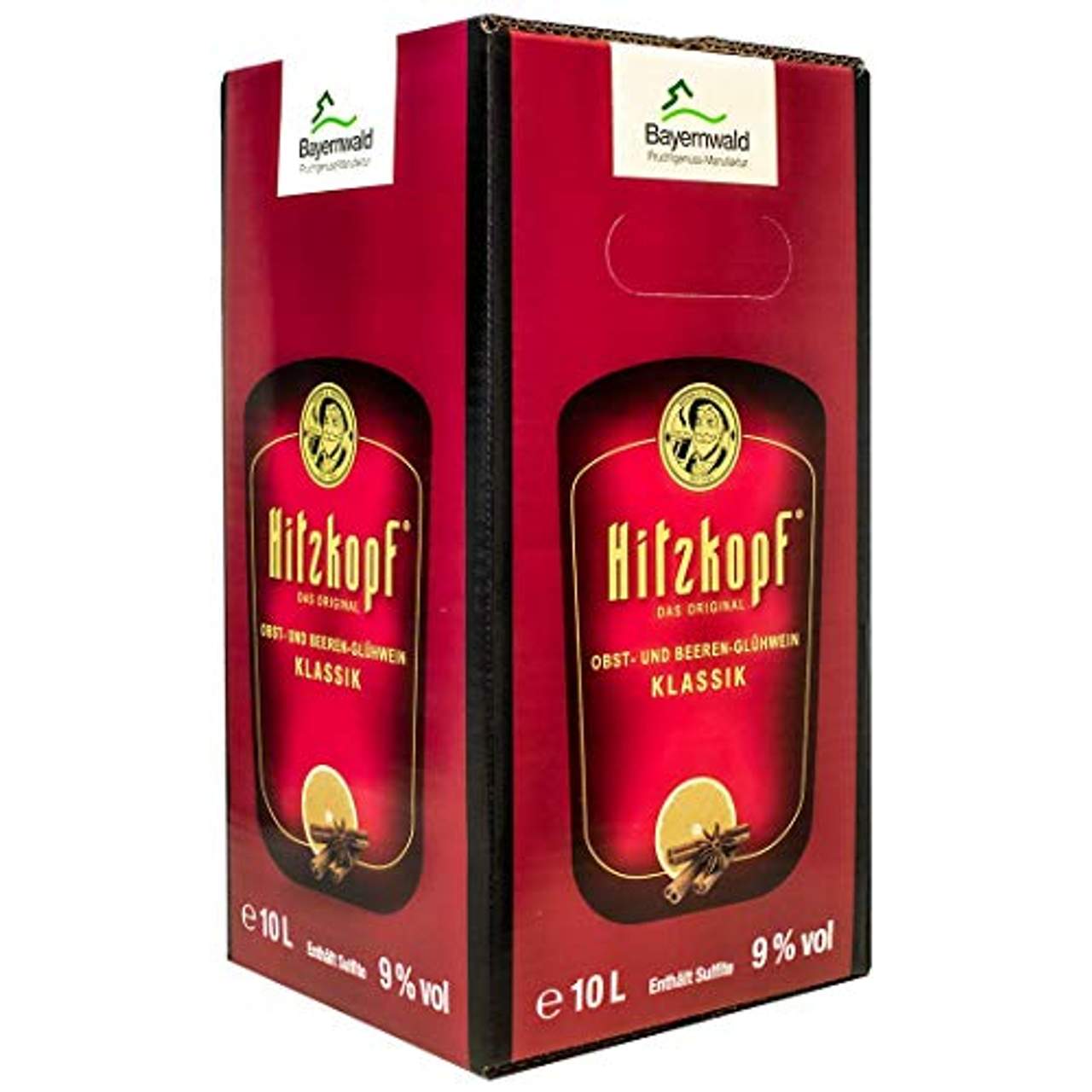 Bayernwald Hitzkopf Glühwein KlassikHitzkopf Beerenglühwein 10 Liter aus Obst- und Beerenwein Klassischer Glühwein / Punsch mit Alkoholgehalt für Ihren Weihnachtsmarkt oder Ihr Café Zur Verwendung im Glühweinkessel in der Gastronomie und auf den Märkten ideal. Das Bag in Box System ist praktisch und optimal stapelbar. In der Entsorgung umweltfreundlich, trennbar in Pappe und Folienbeutel.Unter Verwendung von erstklassigen Obst- und Beerenweinen und unter Zugabe erlesener aromatischer Gewürze wird dieser Hitzkopf Glühwein nach altem Familienrezept hergestellt.Hitzkopf Klassik Glühwein ist gebrauchsfertig und muss nur noch langsam im Glühweintopf erhitzt werden. Der fruchtige Glühwein mit 9% Alkoholgehalt sollte nicht mehr kochen. Ob in gemütlicher Atmosphäre oder auf dem Weihnachtsmarkt, Hitzkopf Beeren-Glühwein ist immer ein Genuss und wärmt Körper und Seele.•Servierfertig - muss n