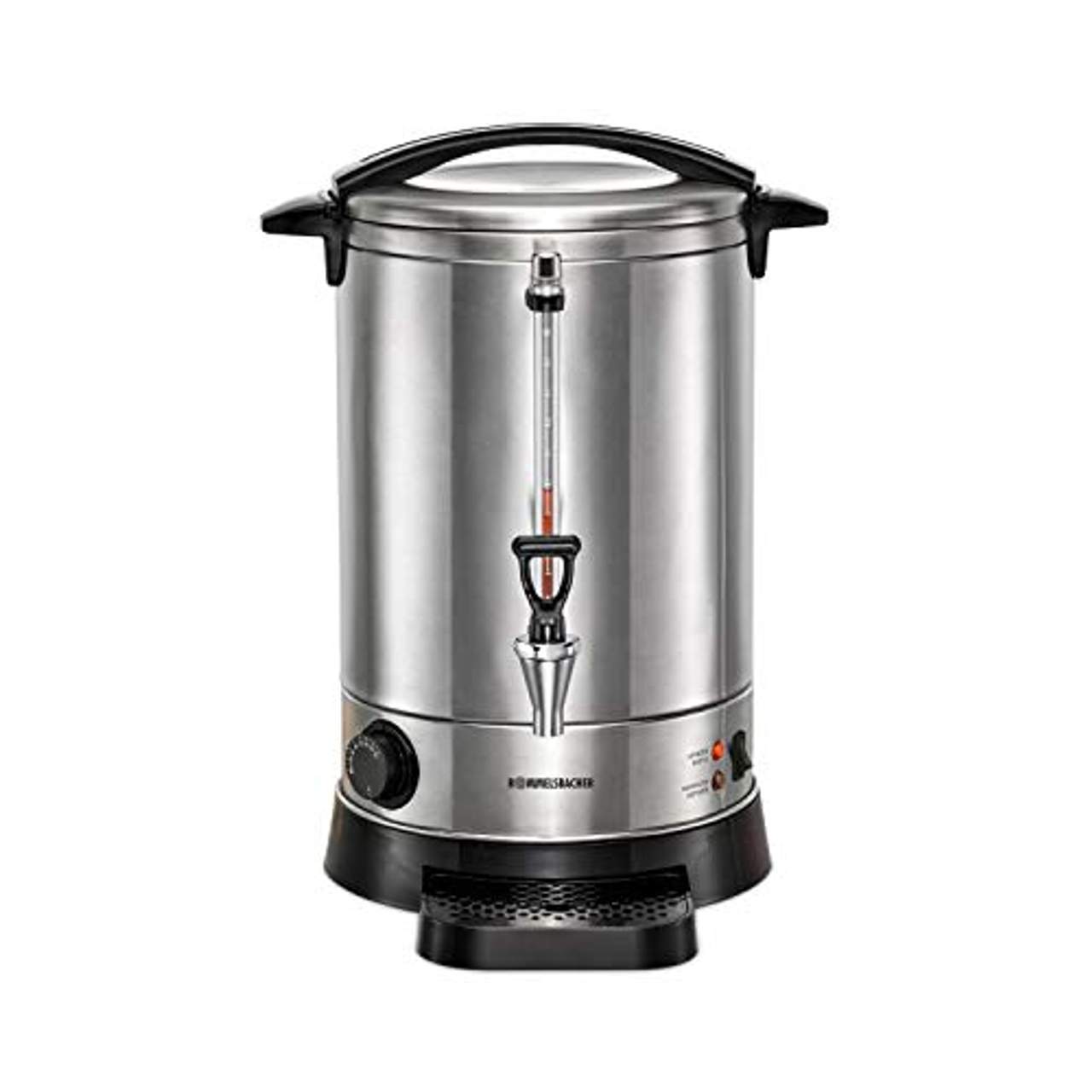 Rommelsbacher Heißgetränkeautomat GA 1700 13 LiterEin attraktives Gerät - praktisch, energiesparend und kompakt! Ideal zum Ausschank von heißem Glühwein, Punsch, Tee, Kaffee und mehr. Die Temperatur der Getränke kann stufenlos geregelt werden, das Ausgießen erfolgt bequem über den hochwertigen Auslaufhahn direkt in die Tassen.Der robuste Topf aus doppelwandigem Edelstahl ist formschön und pflegeleicht, er sorgt für beste Wärmeisolierung und einen energiesparenden Betrieb. Durch die außenliegende Füllstandanzeige ist der Inhalt jederzeit im Blick. Zur leichten Reinigung sind Anzeige und Abtropfschale abnehmbar.Mit separatem Ein/ Aus-Schalter, Überhitzungs- und Trockengehschutz sowie wärmeisolierten Griffen ist hohe Gebrauchssicherheit garantiert. * Hochwertiger, pflegeleichter und robuster Topf aus gebürstetem, doppelwandigem Edelstahl, energiesparend im Betrieb * Inhalt: 13 Liter bzw. für 52 Tassen à 250 ml * Stufenlose Temperaturregelung * Wärmeisolierte Griffe, abnehmbarer Decke l mit Verriegelung * Geschlossener Topfboden für leichte Reinigung * Außenli