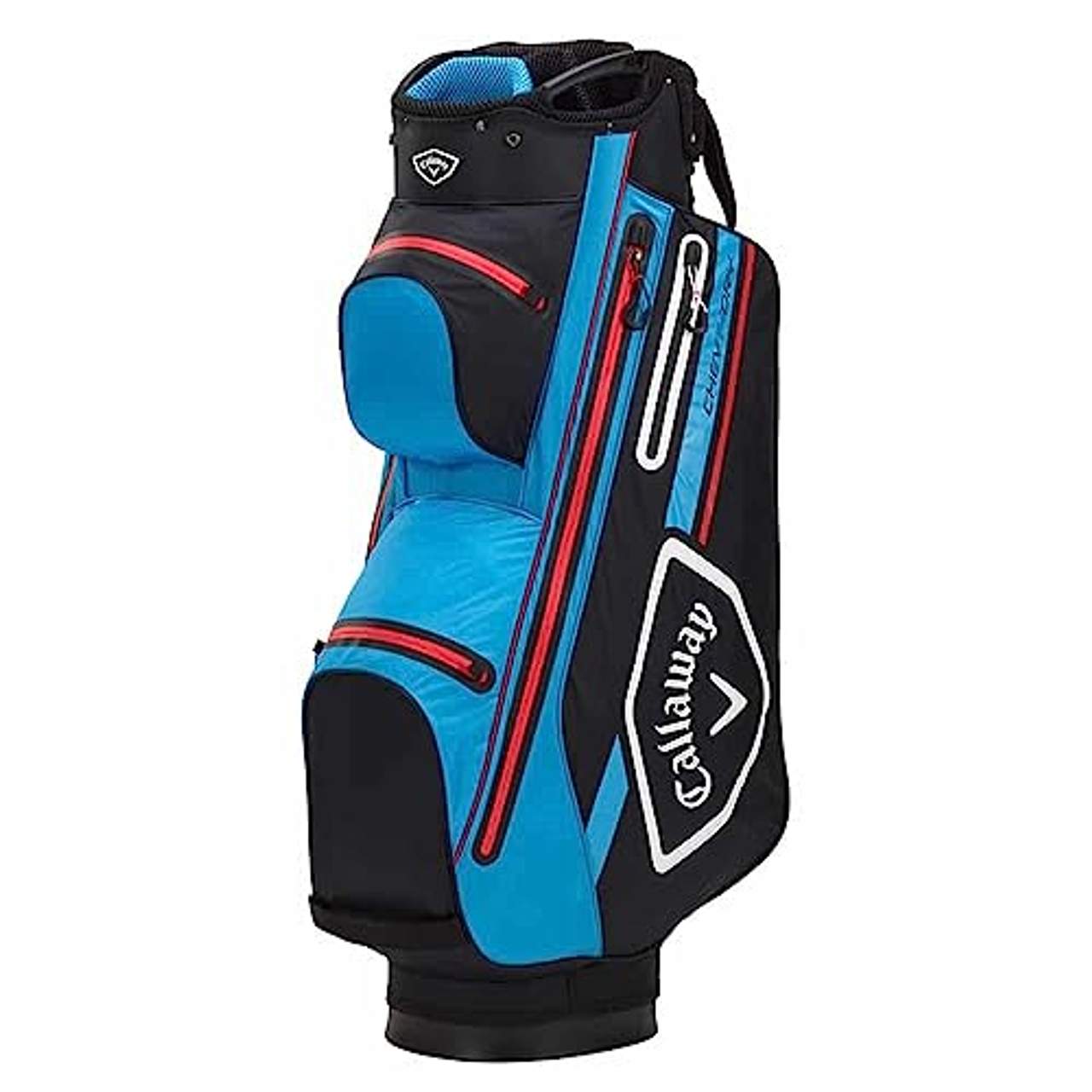 Callaway Women's Bags Golf Chev Dry CartbagDas Callaway Chev Dry 14 Cartbag setzt auf einen wasserdichten Schutz, unltraleichtes Gewicht und ein modernes Design. Verhalten bei RegenDas Chev Dry 14 ist wasserdicht und verfügt über verschweißte Reißverschlüsse und getapte Nähte. TopIn dem großen Top mit 14-facher Unterteilung und durchgängigen Dividern findet jeder Ihrer Schläger seinen eigenen Platz.Taschen und FächerAlle 6 Taschen und Fächer wurden für maximale Verstaumöglichkeiten und einfachsten Zugriff entworfen. Sie sind alle nach vorne ausgerichtet und während der Nutzung auf dem Trolley leicht zugänglich. Zwei Tragegriffe und sein sehr leichtes Gewicht erleichtern das Verstauen nach der Runde.Callaway Cartbag Wasserdicht Ultimative Organisation 14-fache Unterteilung Modernes Design Viel Stauraum 6 Taschen und Fächer Zwei große Seitentaschen Regenschirmhalter Handschuhhalter Gewicht: ca. 1,8kg