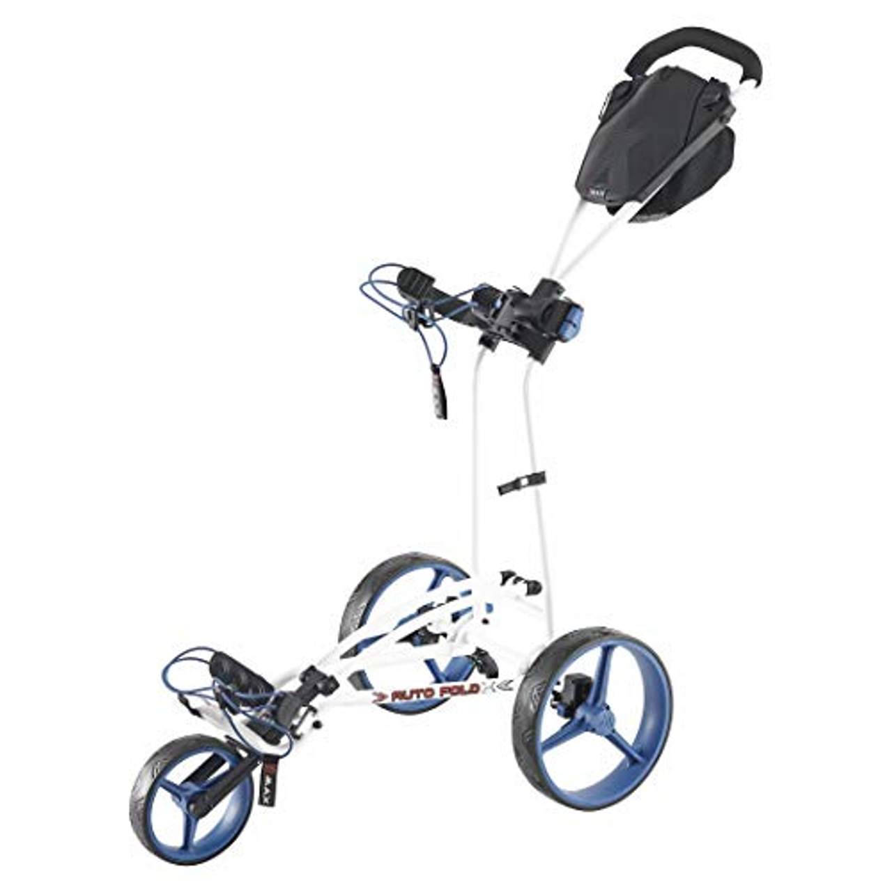 Big Max Autofold X Trolley WeissDer BIG MAX Autofold X lässt sich ganz automatisch, mit nur einer einzigen Handbewegung zu einem kompakten, platzsparenden Paket zusammenfalten. Ebenso einfach und automatisch lässt er sich auch wieder auseinanderklappen. Das Einzigartige bei diesem Trolley ist auch, dass das Vorderrad gleich automatisch mitklappt.Der preisgekrönte Trolley beeindruckt weiters durch ein schnittiges und kompaktes Design, seiner außerordentlichen Stabilität und seiner verstellbaren Bagauflage.Der neue Organizer bietet zudem jeweils 2 Quick Fix und Quick Lok Befestigungen, an die sich optionales Zubehör befestigen lässt. Der Autofold X ist damit die neue Referenz in der Premium Klasse.In der Übersicht: FALTMECHANISMUSFlat-Fold Technik, Auto-fix fold TechnikMASSE (IN CM74 x 36 x 42GEWICHT (IN KG)7,6HÖHENVERSTELLBARER GRIFFJaQUICK FIX BASISJa, 2QUICK LOK BASISJa, 4 (2x Panel, 2x Baghalterung)MAGNETISCHER BALLMARKERNeinQA BASIS (FÜR I-DRY RAINSYSTEM)JaVERSTELLBARE BAGHALTERUNGJaBREMSEFußbremseABNEHMBARE RÄDERJaSCORECARD FACHJaSTANDBAG GEEIGNETJaTOURBAG GEEIGNETJa