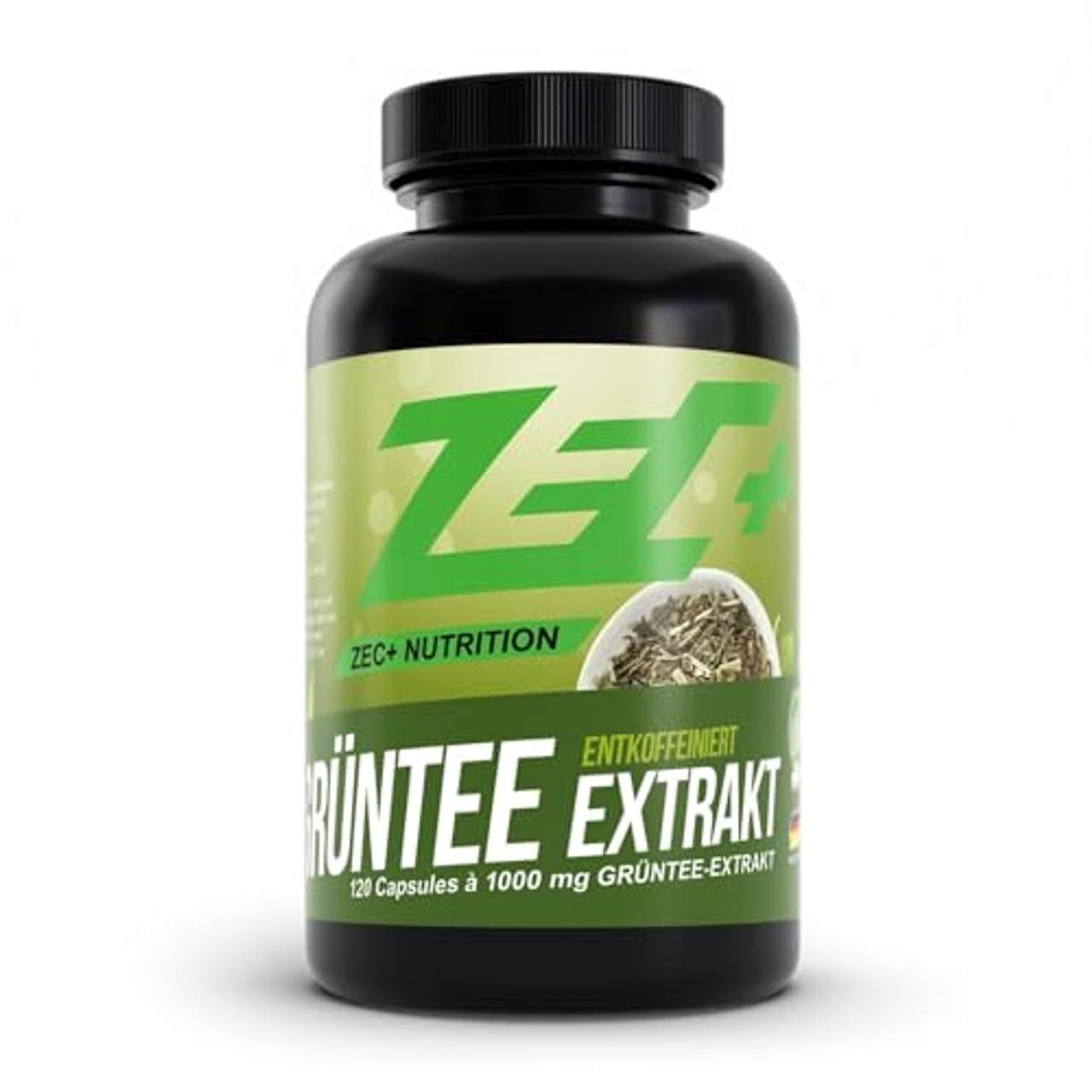 ZEC+ Grüntee Extrakt hochdosiertGrüntee-Extrakt Kapseln - extra hochdosiert! Unsere hochdosierten ZEC+ Grüntee Kapseln liefern 1000mg Grüntee-Extrakt mit 500mg EGCG pro Kapsel - ideal zur Unterstützung von Leistung & Diät! Du bist auf der Suche nach hochdosierten und zugleich qualiativ hochwertigen Grüntee-Kapseln um Deine Power und Konzentration im Training zu unterstützen? Du bist auf der Suche nach einer Nahrungsergänzung bei der Du starker mentaler und körperlicher Belastung standhalten kannst?Pro Kapsel enthält ZEC+ Grüntee-Extrakt 1000mg Grüntee-Extrakt, davon ganze 500mg EGCG. Damit gehört unser Produkt ZEC+ Grüntee-Extrakt zu einem der stärksten Grüntee-Kapseln auf dem Markt. Produkteigenschaften ZEC+ Grüntee-Extrakt Hochkkonzentrierter Grüntee-Extrakt Pro Kapsel 1000mg Grüntee-Extrakt Unterstützt Ausdauer und Konzentration Beliebt auch in Diät- und Definitionsphasen Bequeme Einnahme durch Kapselform Durch die hochkonzentrierte Form profitierst Du von den vielen postiven Eigenschaften des Grüntee-Extraktes.
